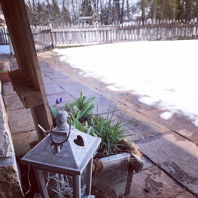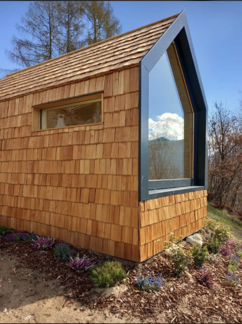 Sie besteht aus Küche, Wohnraum mit Kachelofen für Holzfeuerung, 1 Zimmer mit Doppelbett und 1 Zweibettzimmer, zusätzliche Betten möglich, Bad mit Waschbecken und Duschwanne aus Lärchenholz. Für Kinder haben wir ein Reisebett mit Bettlaken und Bezügen, Tischsitz, Untertassen und Besteck.