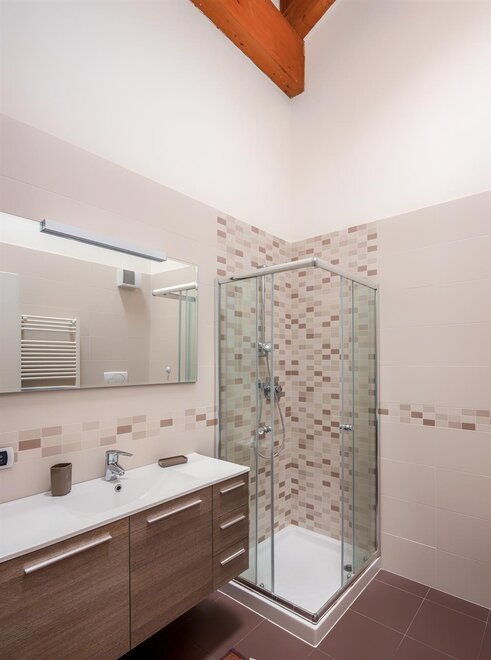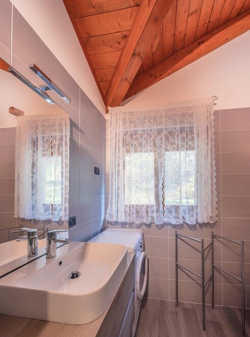Ferienwohnung am 1. Stock von 50 mq mit Wohnzimmer mit kleiner Küche, Mikrowelle, Dusche, Föhn, Heizung, Balkon, reservierte Parkplatz im Freien, Garage, Keller, Aufzug, Bügel und Bügelbrett, Staubsauger, Fernsehsatellit, Tischwäsche, Bettwäsche und Badwäsche (auf Anfrage), kleine Tiere erlaubt. Reinigung € 30,00.