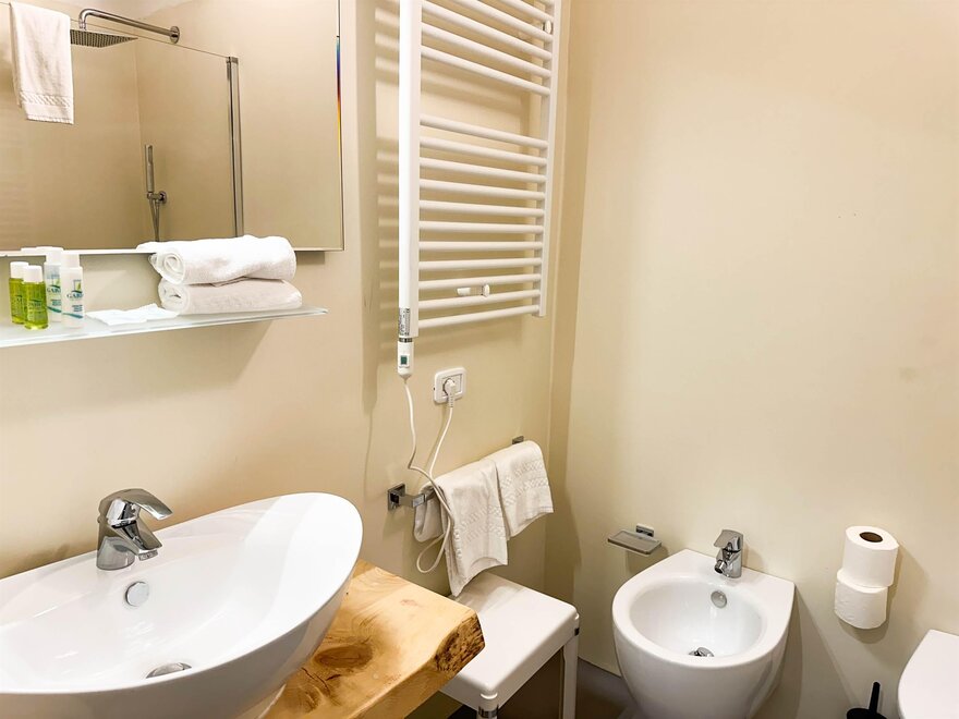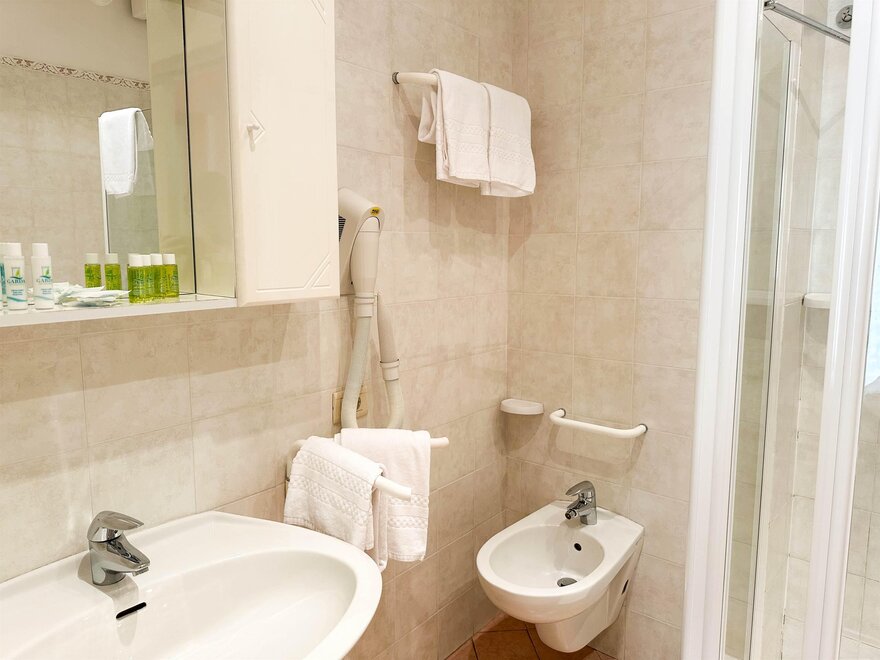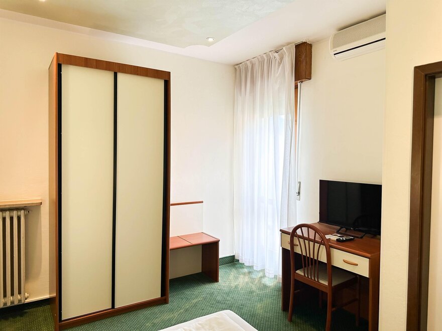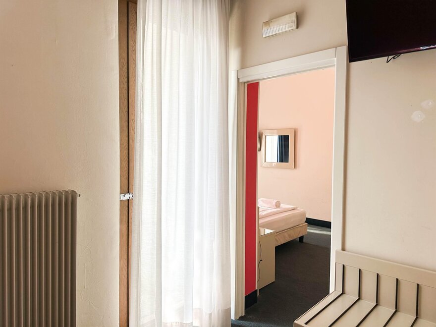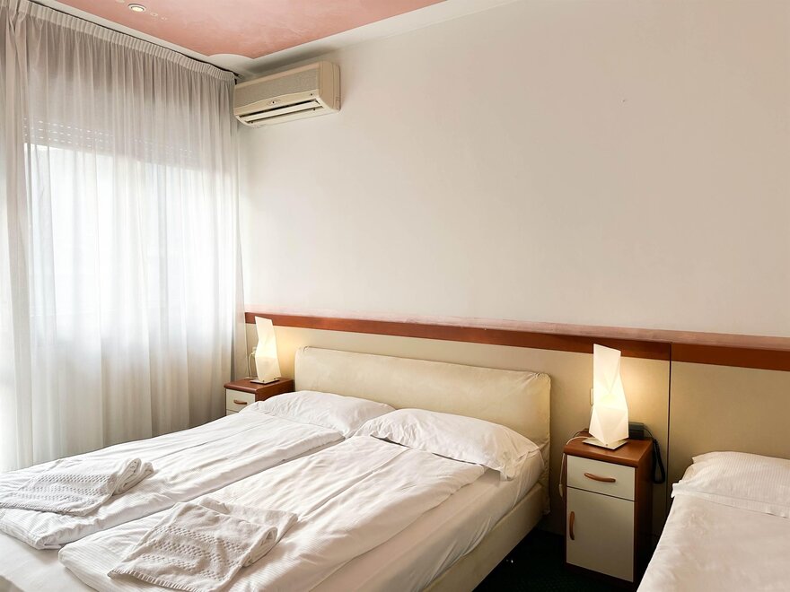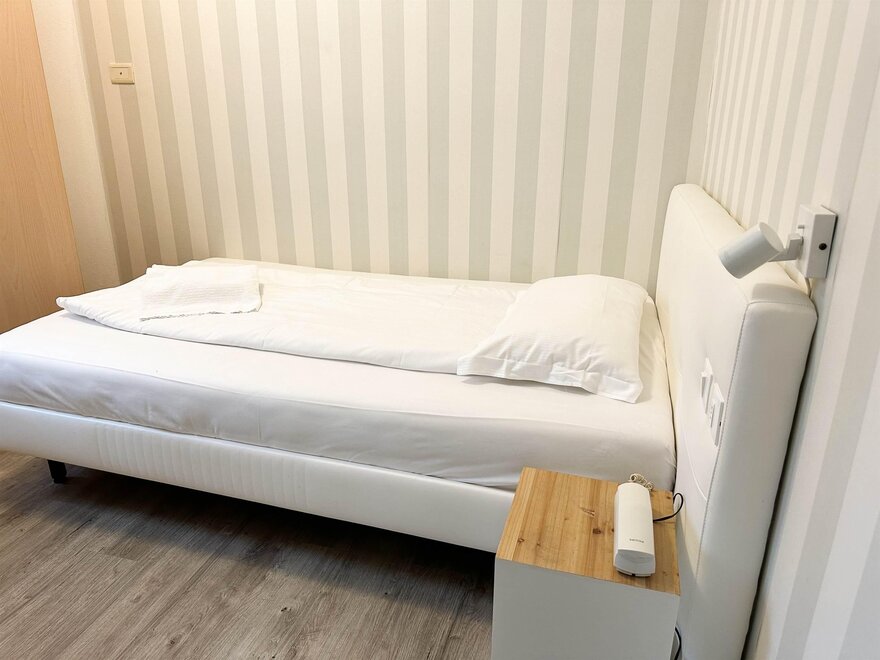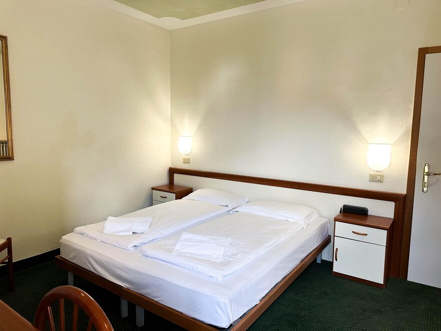 Das Zimmer kann mit einem Doppelbett oder zwei Einzelbetten eingerichtet werden.Ausstattung Zimmer/Appartement