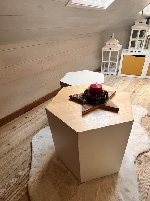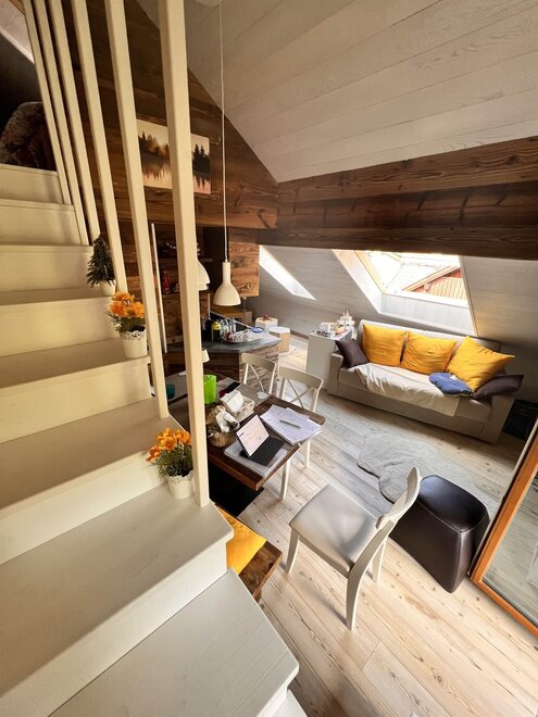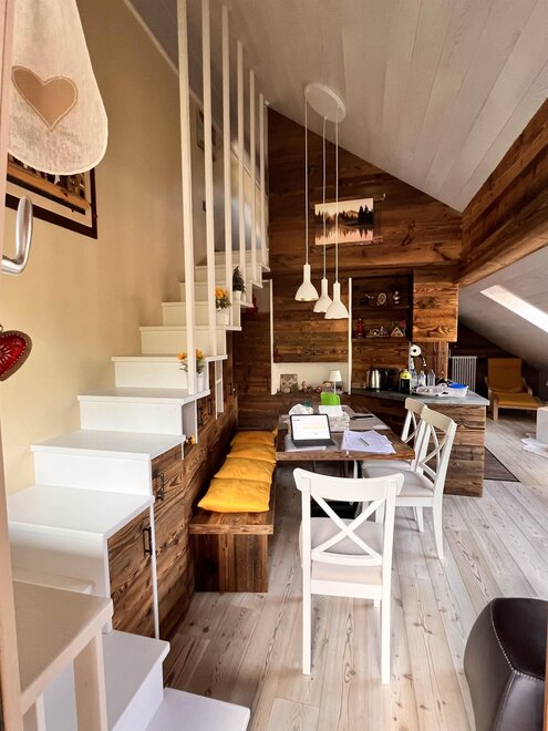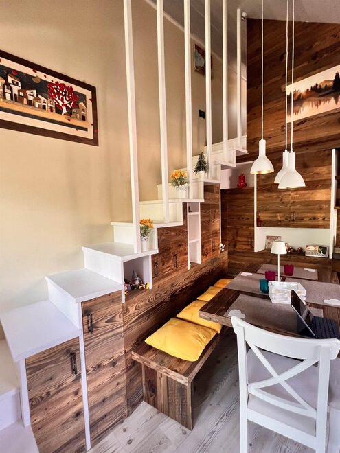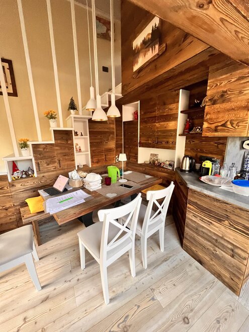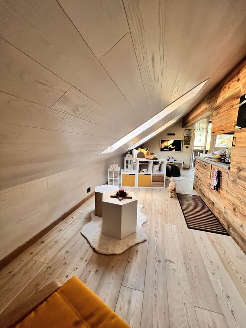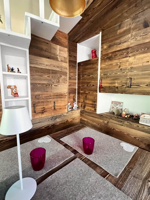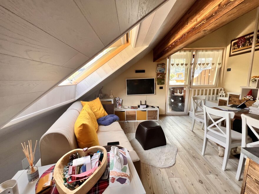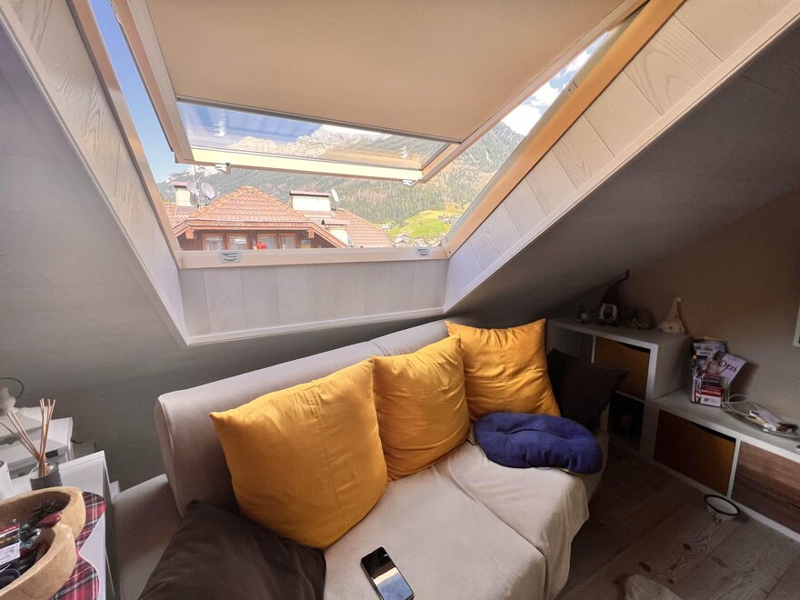 Entzückende Dachwohnung im Zentrum von Moena, die "Fee der Dolomiten" genannt wird. Es verfügt über eine Garage und einen Parkplatz, ideal für Paare, die einen romantischen Urlaub im Zeichen von Outdoor-Sport und Entspannung wünschen. Die neu renovierte Wohnung aus edlem Holz ist mit allen Dienstleistungen ausgestattet: Wi-fi, Infrarotsauna, Smart-TV, mit Zugang zu verschiedenen Streaming-Plattformen, mit zwei herrlichen überdachten Terrassen, die sich ideal zum Entspannen vor einer atemberaubenden Aussicht eignen.