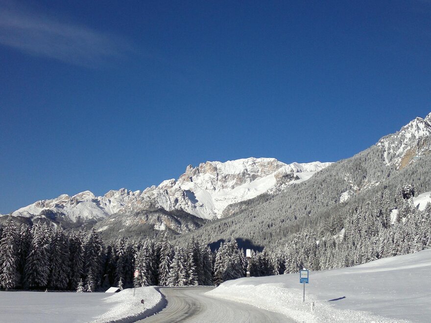 Autobahn A22 (Brenner), Ausfahrt Egna/Ora; Folgen Sie der SS48 in Richtung Cavalese/Predazzo/Moena/Canazei für etwa 50 km. Bei Campitello di Fassa, kurz bevor Sie die Brücke im Zentrum des Dorfes erreichen, rechts in die Strada de Grèva abbiegen