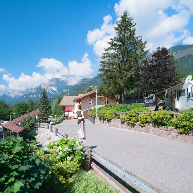 Der Campingplatz befindet sich nur 50 Meter vom Zentrum von Campitello di Fassa und 10 Gehminuten von Canazei entfernt.