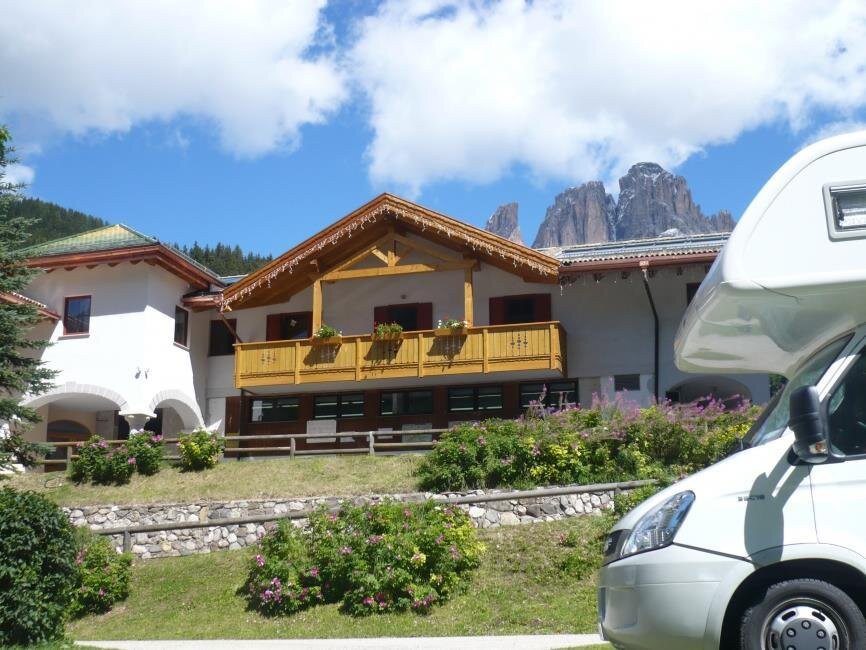 Der Camping Miravalle ist von der herrlichen Kulisse des Sassolungo, des Pordoi und der Marmolada umgeben: Sie können sich auf Ihrem bequemen Stellplatz inmitten der Ruhe der Berge entspannen, während die Kleinen im Spielplatz Spaß haben.