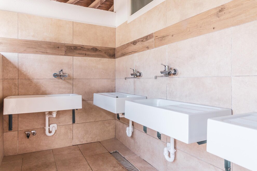 - Einzelwaschkabinen mit Warmwasser