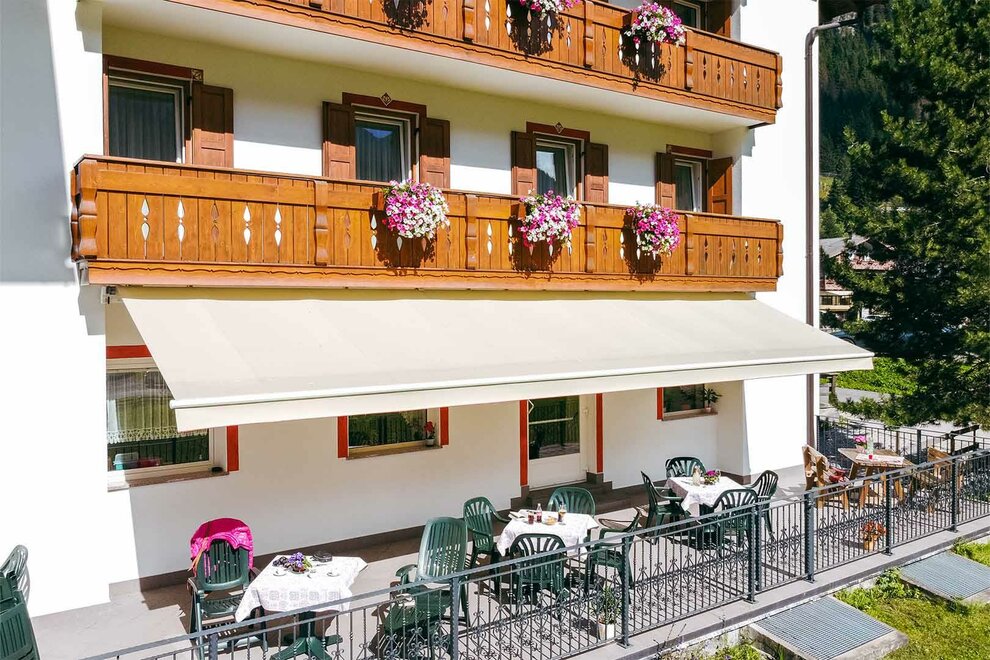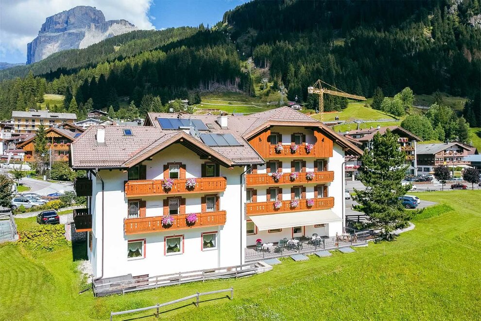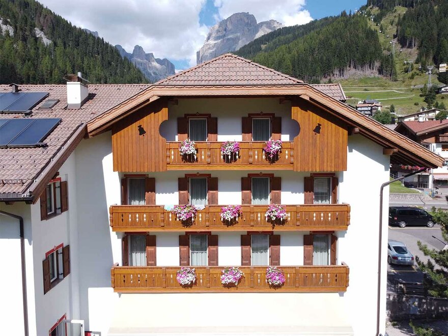 Von unseren Fenstern aus sehen Sie nicht nur die Dolomiten rund um unser Hotel, sondern auch die Annehmlichkeiten und Aktivitäten, die Canazei und das Fassa Val bieten.