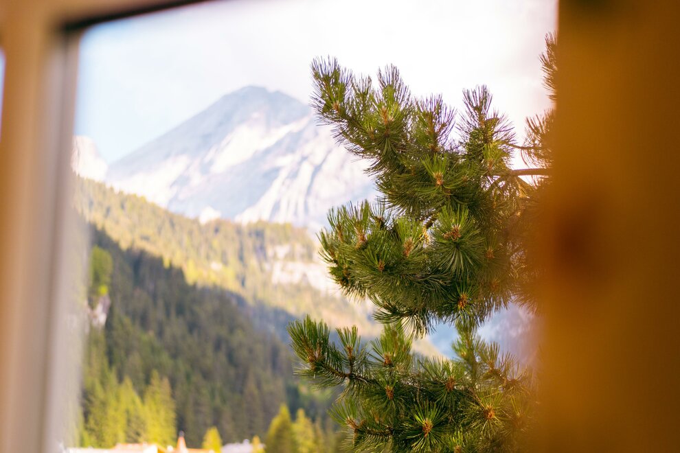 Von unseren Fenstern aus siehst du die Dolomiten um unser Hotel.