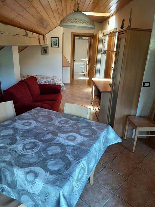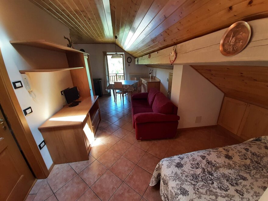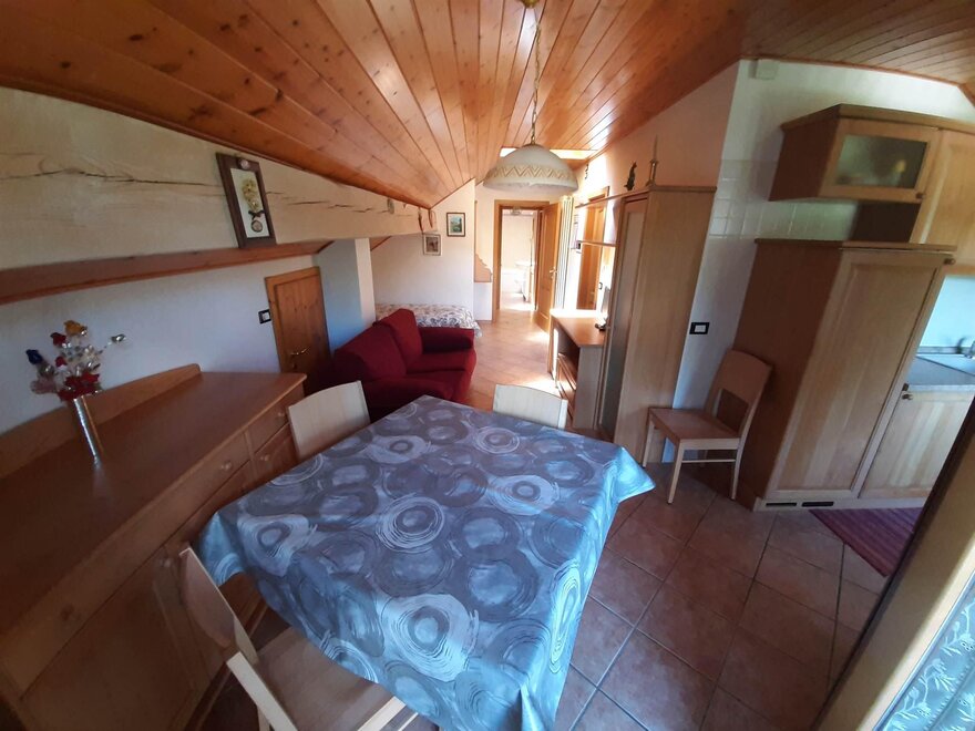 Dachgeschoss im zweiten Stock eines Hauses bestehend aus 3 Wohnungen. Freiliegendes Tannenholz, Balkon, von dem aus Sie Folgaria und die umliegenden Wälder bewundern können. Ausgestattet mit einem Schlafzimmer mit Doppelbett und einem Schlafsofa im Wohnbereich. Gegenwärtiger Fernseher, Geschirrspüler, Backofen, Mikrowelle, Badewanne und Waschmaschine.