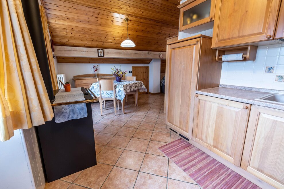 Apartment von 40 m² im 2. Stock, weniger als 2 km vom Zentrum von Folgaria entfernt, gemütlich und warm dank der Fichte, die es in jedem Detail umhüllt. Das Apartment ist eine Dachgeschosswohnung mit 1 Schlafzimmer mit Doppelbett, Schlafcouch im Wohnbereich. Küche mit Geschirrspüler und Ofen, Badezimmer mit Tageslicht und Badewanne, Waschmaschine. Balkon und Gemeinschaftsgarten mit anderen Apartments.