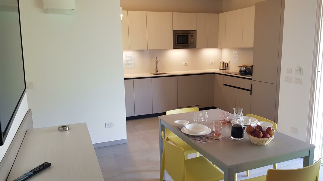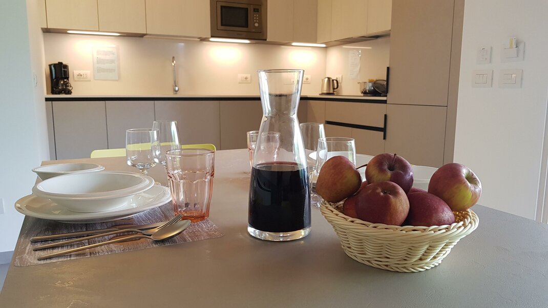 Die Ferienwohnung „Il Melograno“ liegt im Erdgeschoss und zeichnet sich durch eine hohe Decke mit Holzbalken aus. Die gepflegte Einrichtung ist modern gehalten und besteht aus einer gut ausgestatteten Kochnische, einem großen, hellen Wohnzimmer mit Schlafcouch für 1 oder 2 Personen, Satellitenfernsehen, einem komfortablen Doppelzimmer für 2 Personen mit viel Platz bietendem Kleiderschrank, Sicher, Schreibtisc; einem Schlafzimmer mit 2 Einzelbetten für 1 oder 2 Personen; sowie aus einem großen Bad mit breiter Dusche und Fön. Die Wohnung verfügt über einen Außenbereich mit eigener, überdachter Veranda, Tisch und Stühlen, Liegestuhl und Sonnenliege. Jede Wohnung verfügt darüber hinaus über einen kostenlosen Parkplatz im Freien.