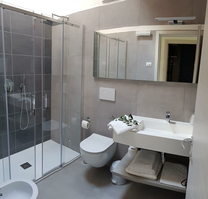 Fließendes Kalt- und Warmwasser, Waschtisch, Bidet, Bad, WC, Pflegeproduktegeschenk, Dusche