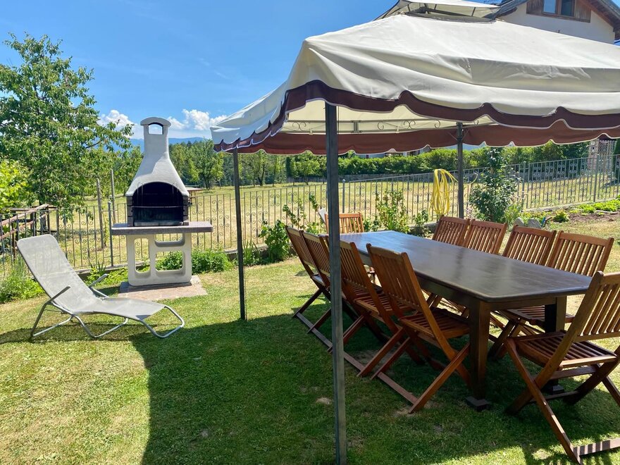 Das Haus verfügt über einen Garten mit Grill, Esstisch, Sitzecke und Schaukel. Außerdem stellen wir zwei Außenstellplätze und einen Ski-/Fahrradabstellraum in der Garage zur Verfügung.