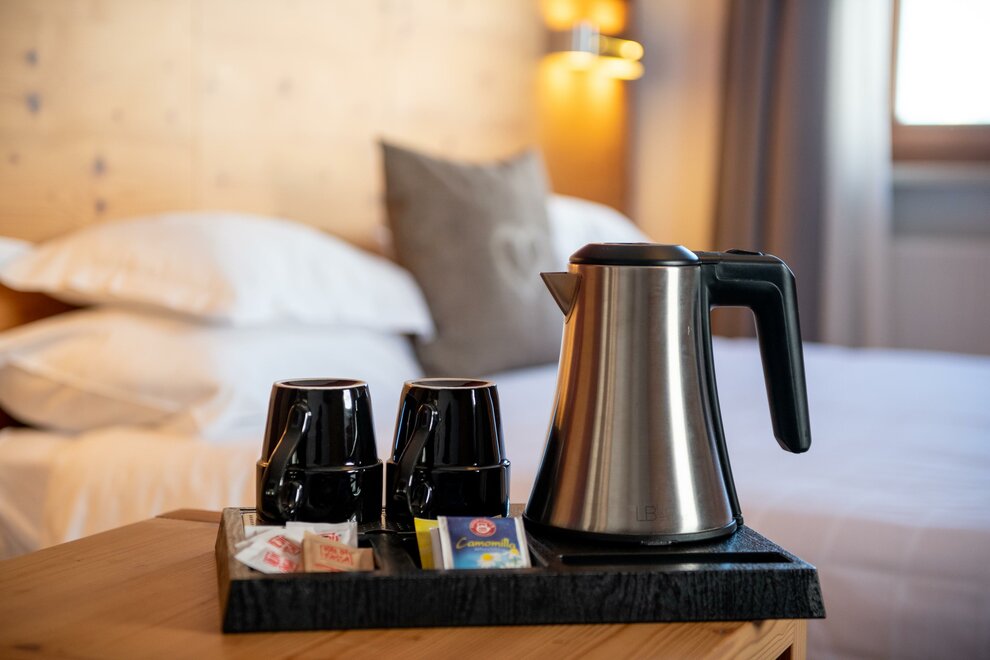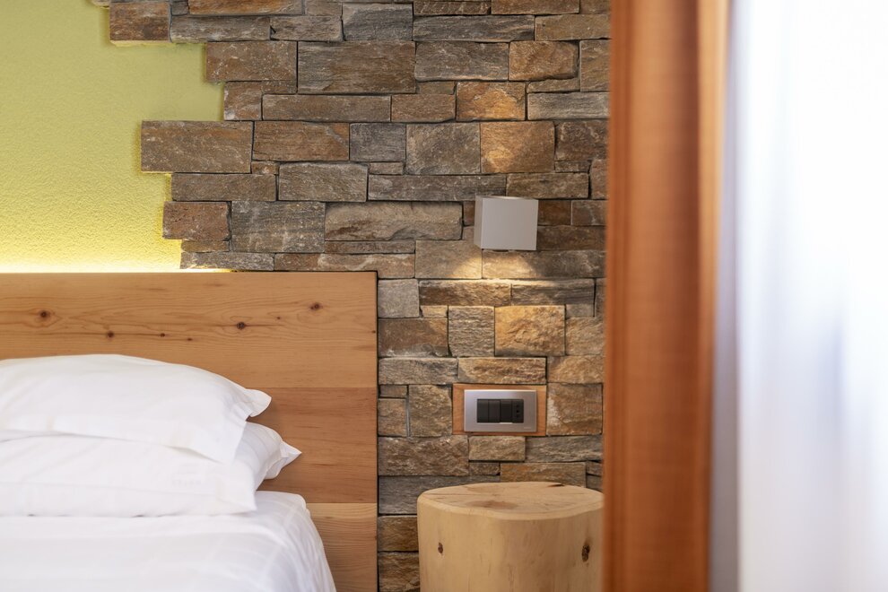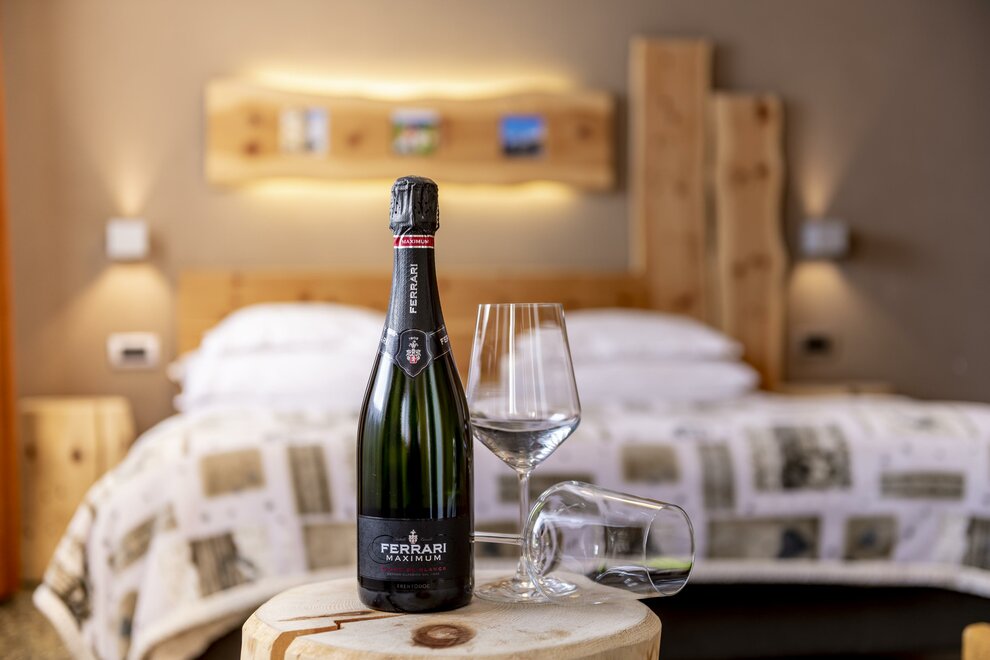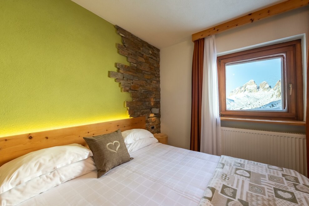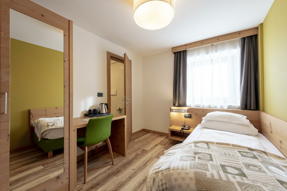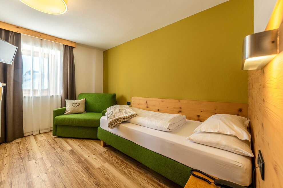 Das Zimmer ist aus duftendem Zirbenholz mit Blick auf den Sassolungo (Langkofel) eingerichtet und verfügt über ein eigenes Bad mit Bidet, Dusche und Pflegeprodukten, Tee- und Kaffeestation, einen Schreibtisch, einen Safe, kostenfreies WLAN und einen Flachbild-Sat-TV. Bitte geben Sie bei der Buchung Ihre gewünschte Bettenart an.
