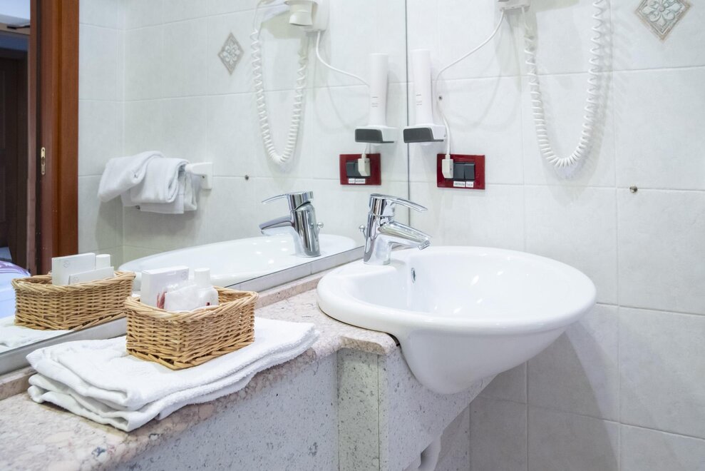 Waschtisch, Pflegeproduktegeschenk, Fließendes Kalt- und Warmwasser, Bidet, Dusche, WC, Bad, WC