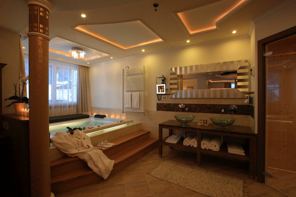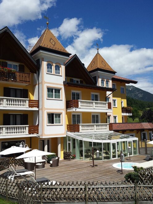 Das Dolce Avita Hotel Spa & Resort liegt im Zentrum von Andalo, nur 350 m vom nächsten Skilift entfernt. Das kostenfreie Wellnesscenter Spa Sesto Senso ist 600 m² groß. Das Dolce Avita bietet Ihnen Innenpools für Erwachsene und Kinder und verschiedene Wellnesseinrichtungen wie Saunen, Whirlpools und Kneippbäder. Es erwarten Sie zudem ein Tennisplatz und ein Miniclub für Kinder. Die Zimmer verfügen über eine romantische Einrichtung in warmen Farben und Holzmöbel. Weiterhin erwarten Sie ein Balkon mit Aussicht auf den Garten, die Paganella oder die Brentner Dolomiten. Beginnen Sie Ihren Tag am Buffet mit hausgemachten Kuchen, Croissants und lokalen Produkten. Später können Sie im Restaurant regionale und internationale Gerichte speisen. Kostenlos stellen Sie Ihr Fahrzeug auf dem Parkplätze vor Ort ab. Außerdem gibt es einen kostenlosen Skibus, der alle 15 Minuten fährt. An der Rezeption können Sie Skikurse buchen.