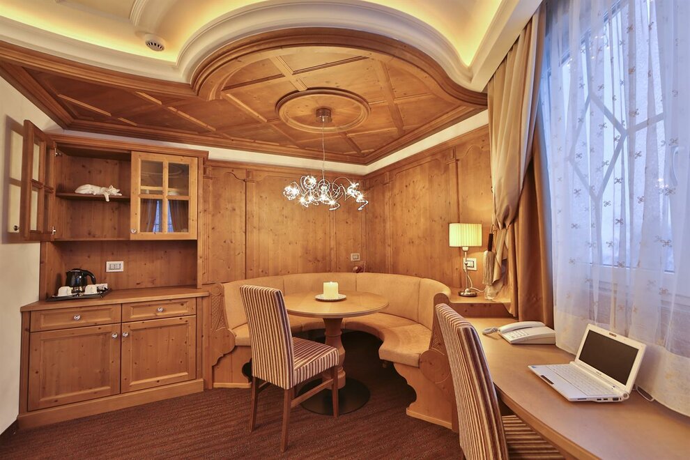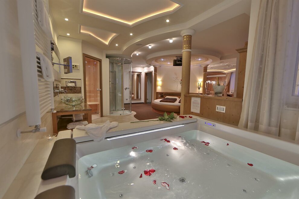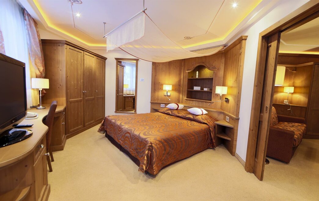 Das Hotel Dolce Avita verfügt über zahlreiche Zimmer mit dem Namen "Romantic", die von berühmten Designern gestaltet wurden, um eine besonders romantische Atmosphäre zu schaffen. Verschiedene Stile zeichnen sie aus. Zimmer, verkleidet mit warmem, antiken Holz, natürlichen und eleganten Materialien, einige werden Ihnen das Gefühl vermitteln, in einem bequemen Himmelbett aus Fichtenholz im trentinischen Stil zu schlafen, ausgestattet mit Vorhängen und einem Spiegel im oberen Teil des Bettes. Großzügig und einladend (25 qm), alle ausgestattet mit einem 37" LCD-Farbfernseher mit digitalem terrestrischem Fernsehen, Minibar, Telefon und Safe, einige mit Sofa. Die Dolce Avita Romantic Rooms verfügen außerdem über einen Balkon mit Blick auf den Garten und den Monte Paganella oder die Brenta-Dolomiten, ein Badezimmer mit WC, Bidet, Dusche und Haartrockner. Um Ihren Appetit zu stillen, haben wir für Sie den Speisesaal "La Piazzetta" reserviert, einen im alpinen Stil eingerichteten Raum, in dem unsere Köche und Mitarbeiter Ihren Appetit in einem warmen und einzigartigen Ambiente stillen werden. Wählen Sie den romantischen Urlaub und erleben Sie einen unvergesslichen Traum.