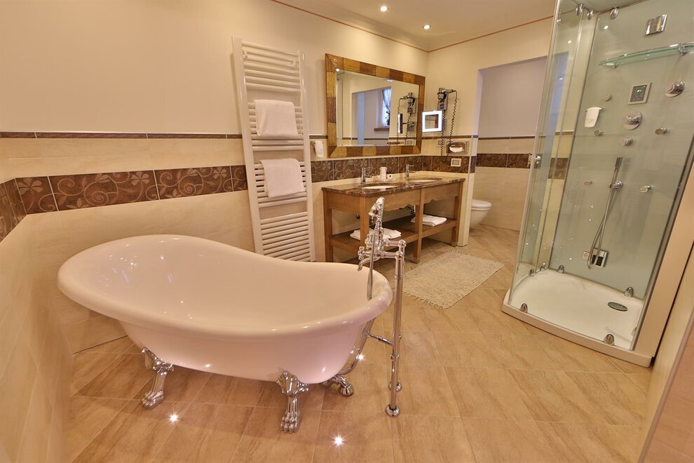 Fließendes Kalt- und Warmwasser, WC, Waschtisch, Dusche, Bidet