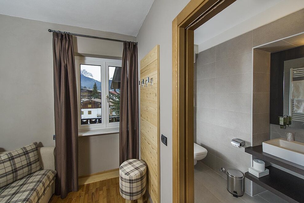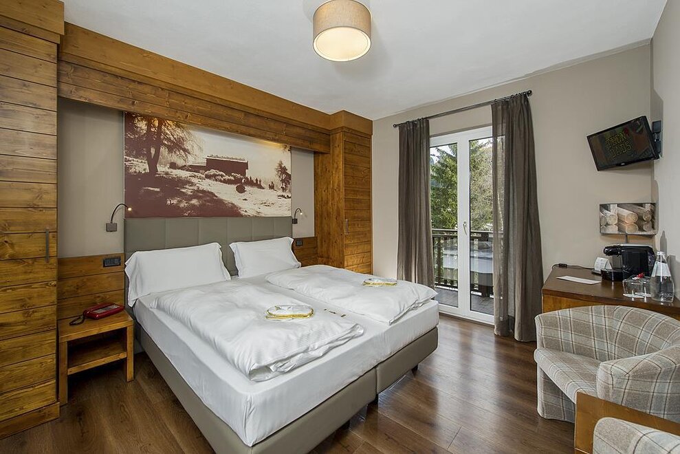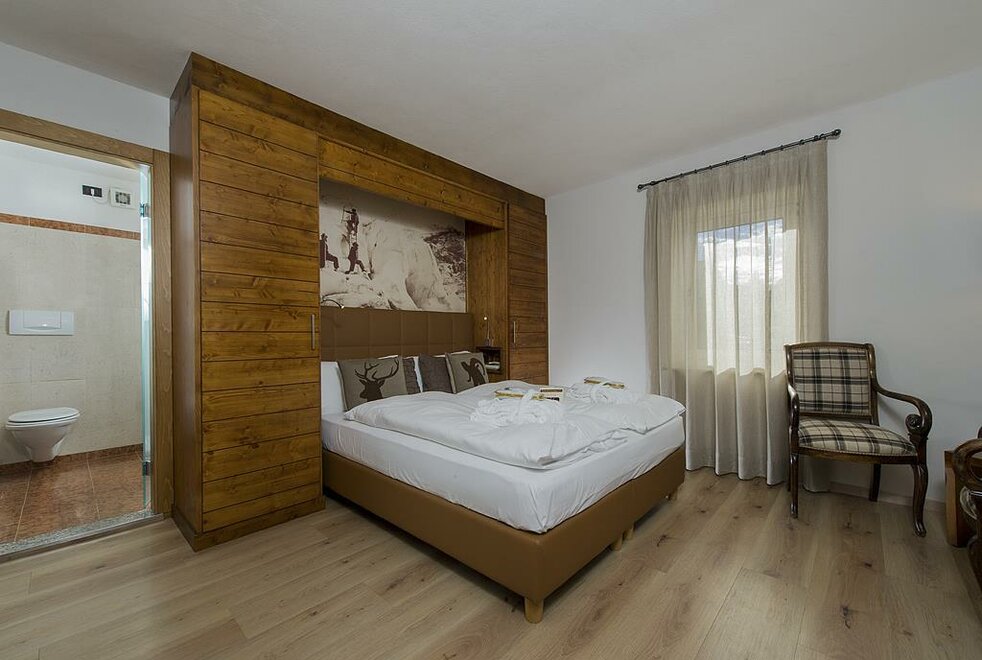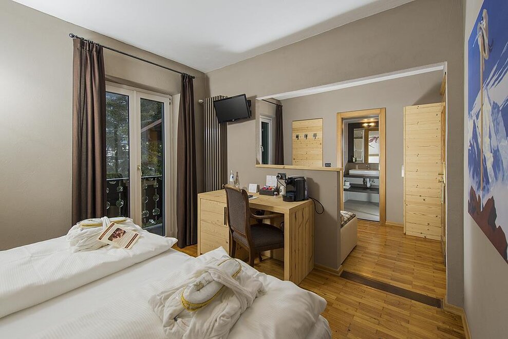 Die Gran Baita Kammer Ein kleines Juwel, ausgestattet im typischen Bergstil, eine warme und einladende Umgebung ideal für 2 Erwachsene mit der Möglichkeit, ein drittes Bett oder ein Kinderbett hinzuzufügen Badezimmer mit Dusche, TV, Safe, Minibar Holzboden WLAN-Verbindung Bademäntel Auf Anfrage mit Balkon