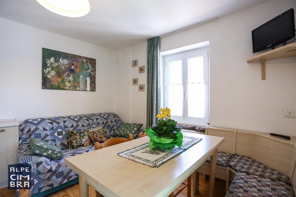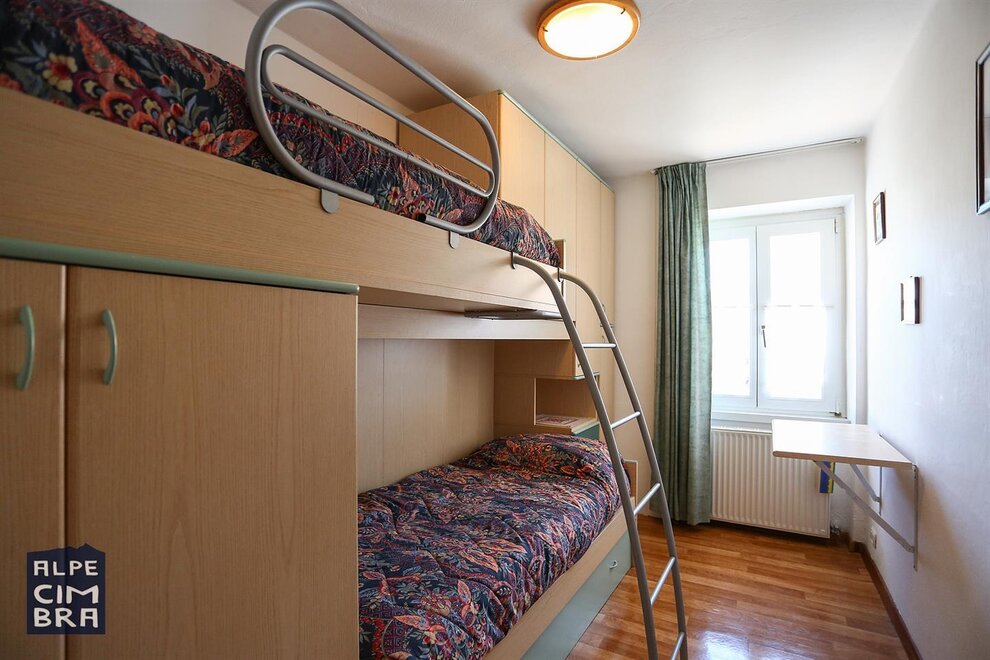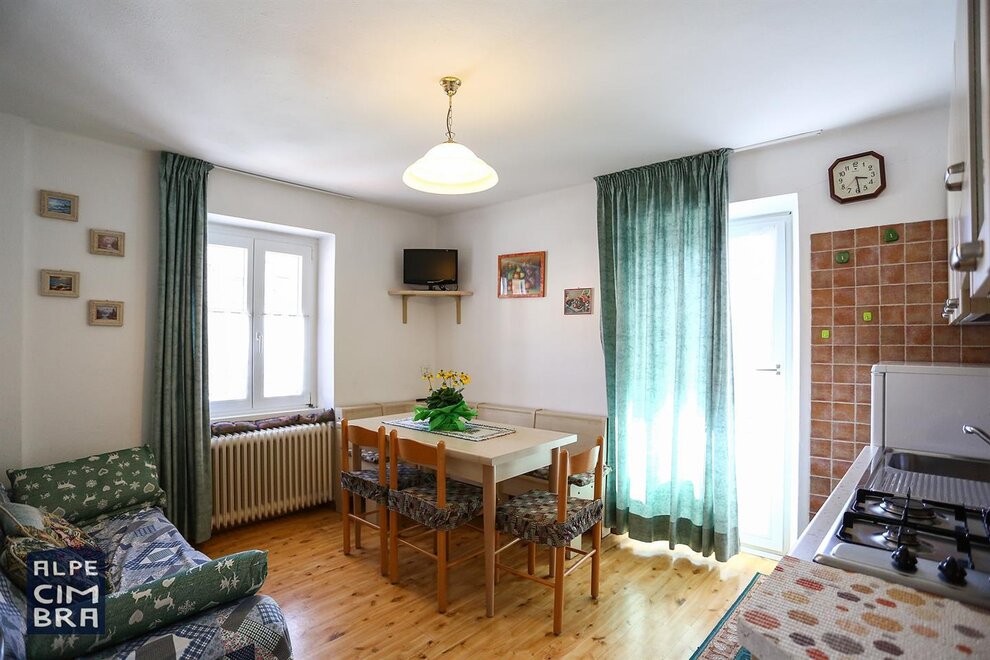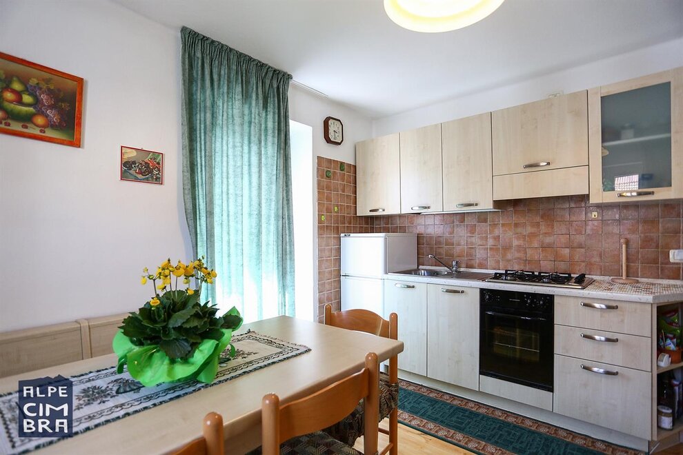 Miete: monatlich - saisonal Wohnung von ca. 55 m2 im 2. Stock am Anfang der Fußgängerzone von Folgaria. Sonnig und zentrumsnah. Küche ausgestattet mit Geschirrspüler, Backofen, Mikrowelle. Zwei Schlafzimmer, eines mit Doppelbett und eines mit Etagenbett, bei Bedarf Zusatzbett möglich. Helle Wohnung mit langem Balkon, mit Parkplatz und Ski-/Fahrradraum