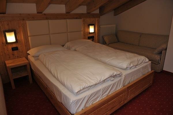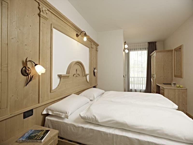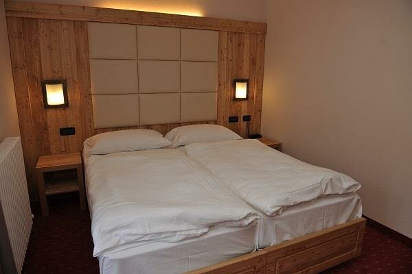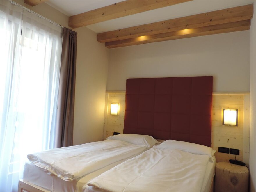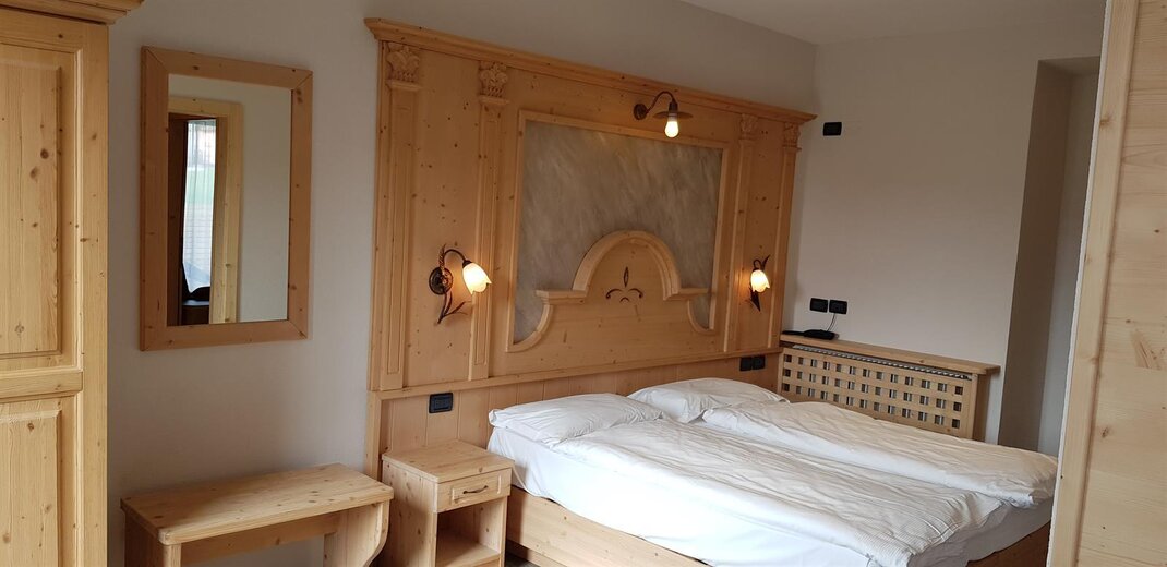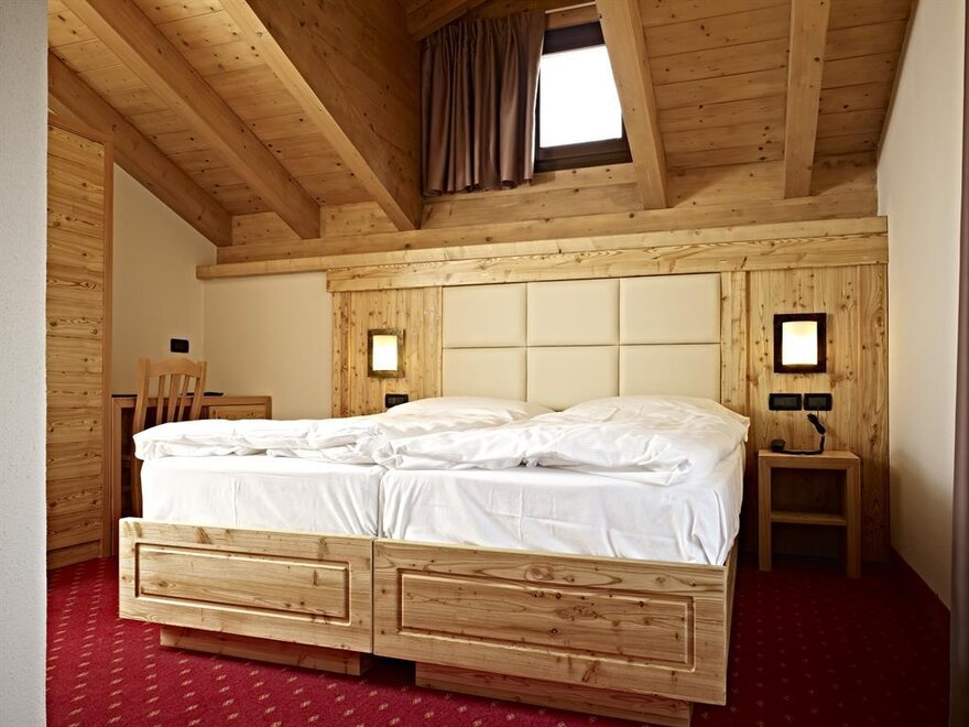 Zimmer im zweiten Stock, Einrichtung aus gebürsteter Lärche oder aus Fichte massiv, mit Blick auf die Berge oder den See. Ein weicher Teppichboden verleiht ein angenehmes Laufgefühl. Die Zimmer verfügen über einen Balkon und sind mit dem Aufzug erreichbar. Sie sind mit LCD-Fernseher (SAT) und kostenloser Wi-Fi-Verbindung, Kühlschrank, Telefon und Safe ausgestattet.Bad mit Dusche, Fön, Vergrößerungsspiegel, Handtücher und Wasch-Set