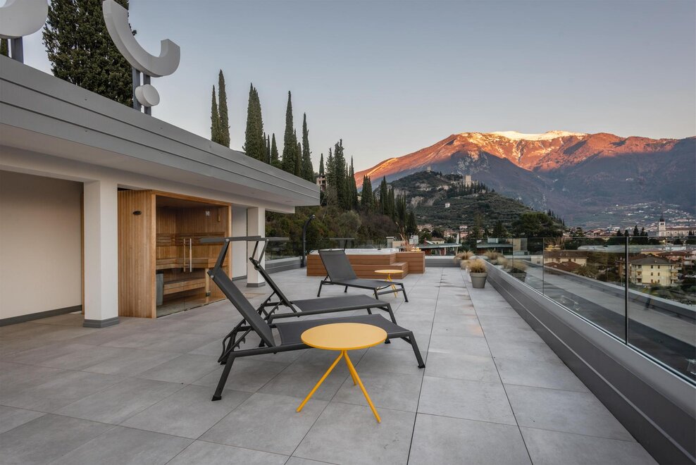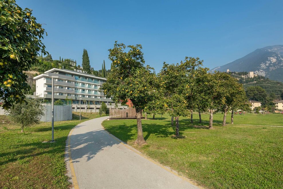 Ein Paradis für outdoor Sports, das ist Hoody Active & Happiness Hotel in Arco. Vom atemberaubenden Aussicht der Alpen, in einem der von Spörtler beliebsten Orten um Gardasee, ist das ganz neue Hotel ideale Unterkunft für die Outdoor-Liebhaber, ein top Startpunkt für Aktive Urlaub. Mit seinen 41 Zimmern, nur drei Schritten vom lebenshaften Ortszentrum, ist es richtig cool, modern aber gleichzeitig komfortable und verfügt über Bikeabstellraum, Terrasse-Solarium mit Whirlpool, Fitnesszone im Freien, Bar mit Terrasse.