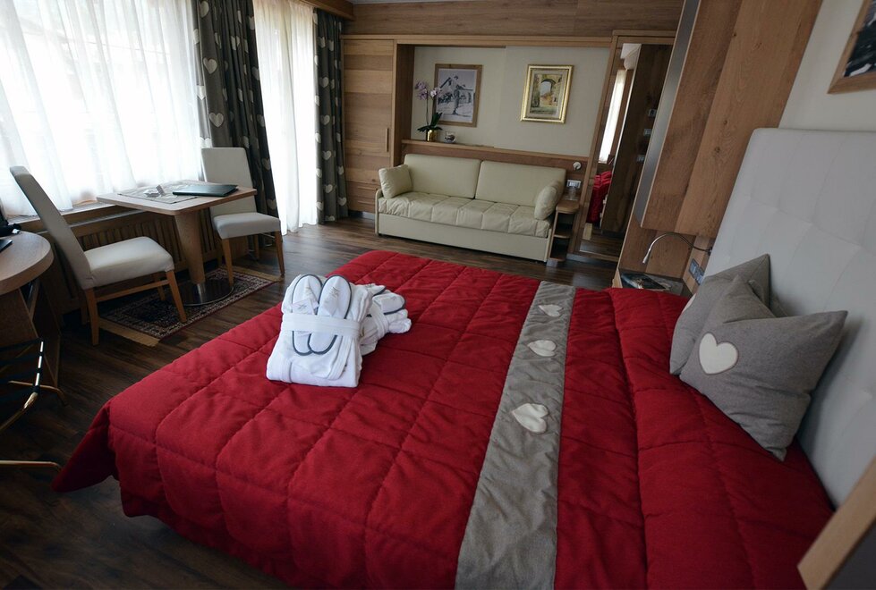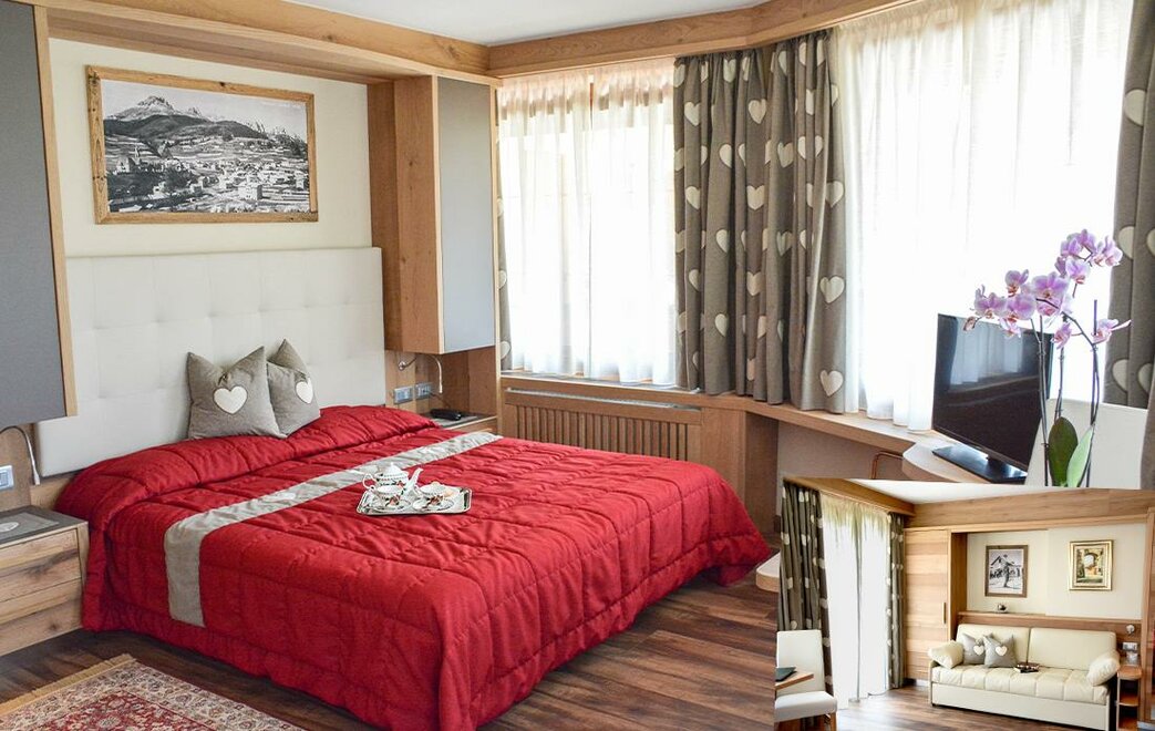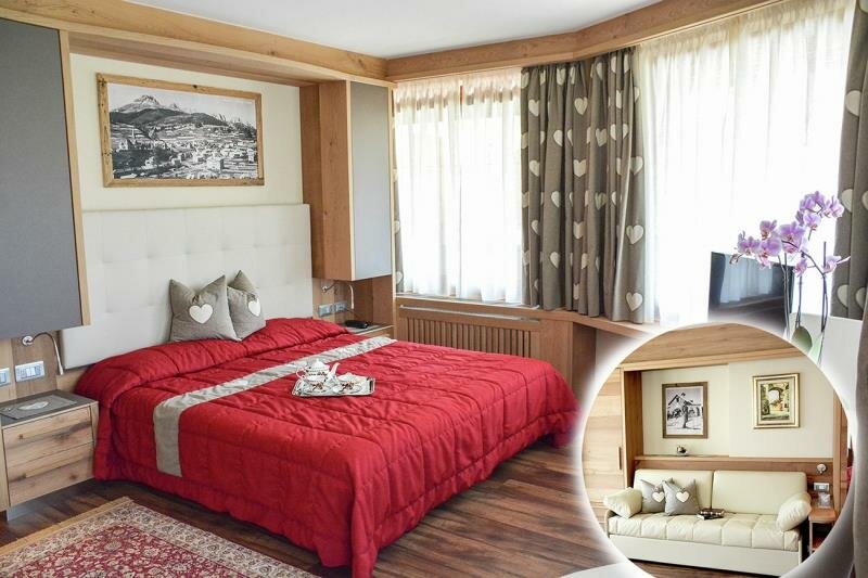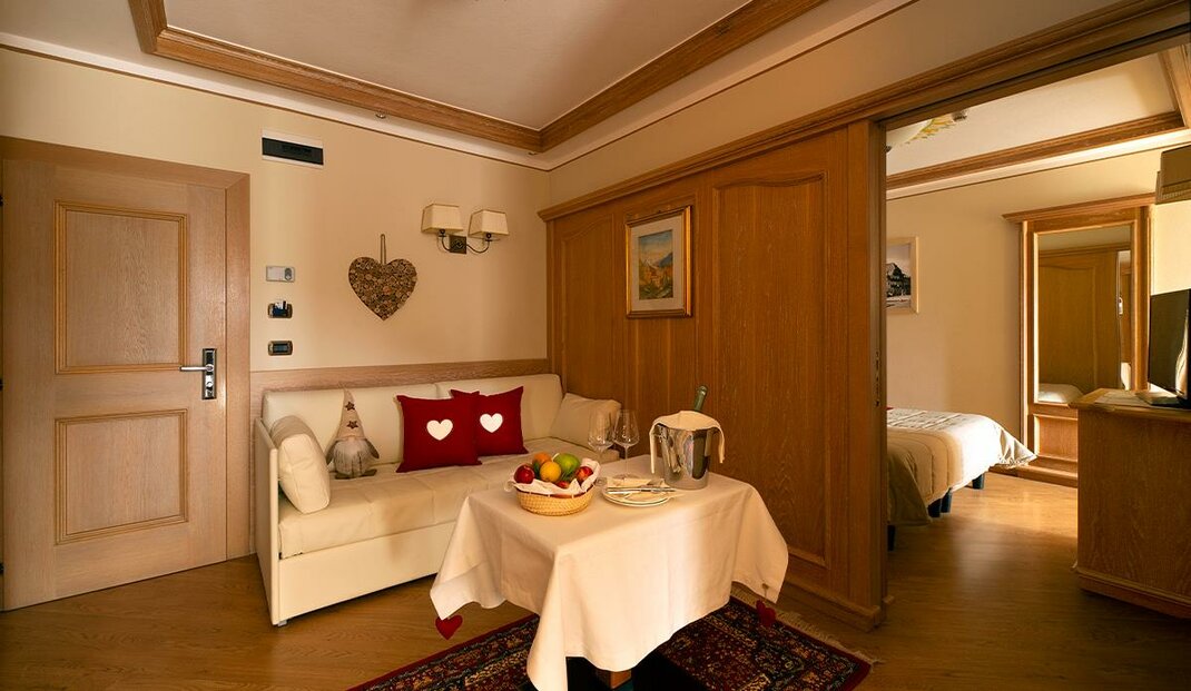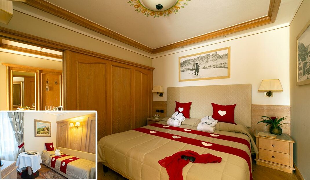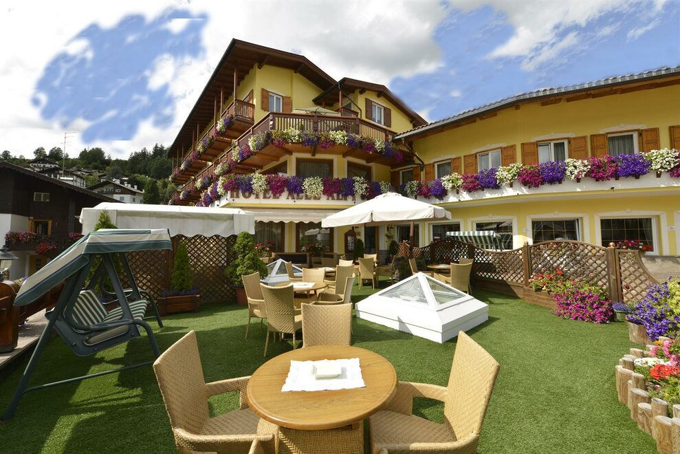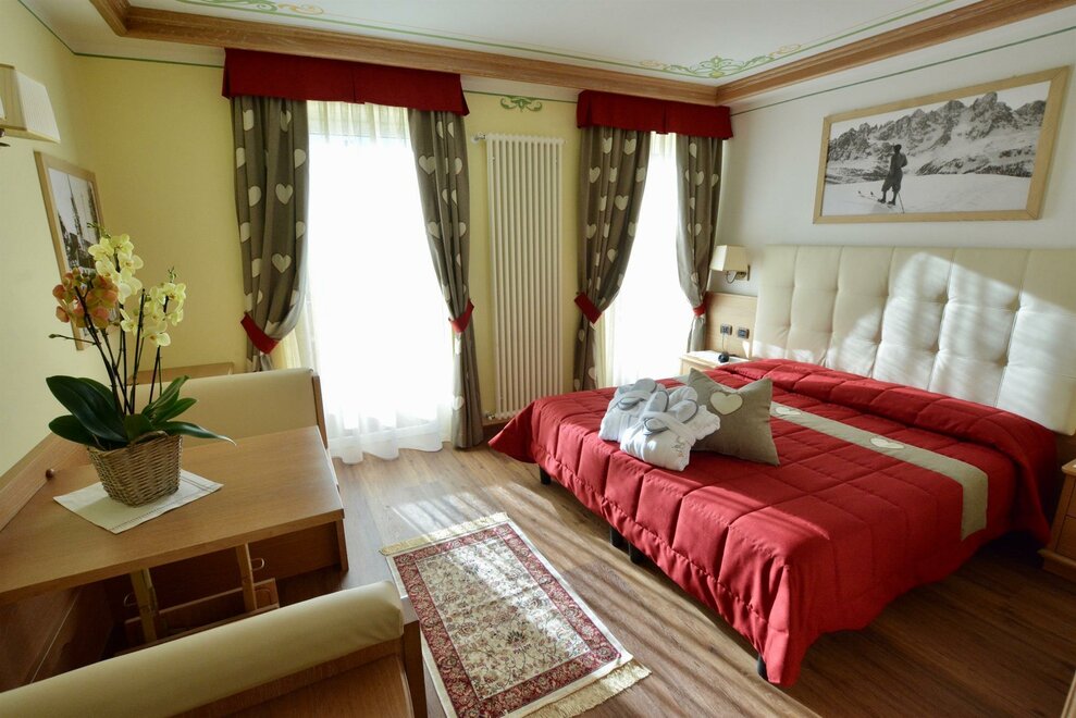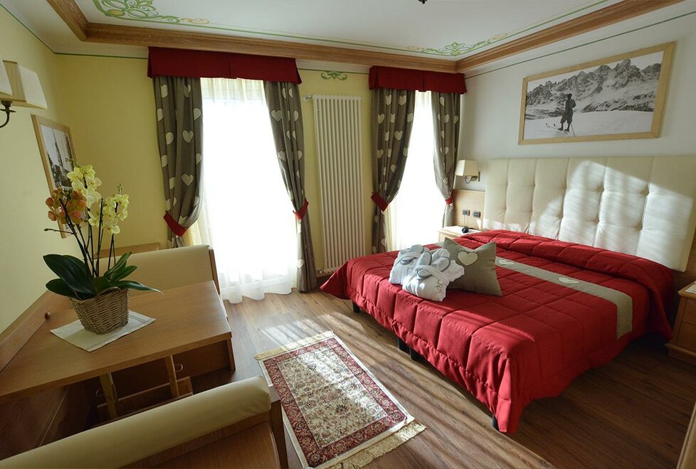4-Sterne-Hotel, zentral gelegen, verfügt über ein modernes Wellness-Center, Schwimmbad und Beauty-Center. Raffiniert und Liebe zum Detail, elegante und komfortable Zimmer und Suiten, alle mit Balkon, Wi-Fi, Sat-TV mit kostenlosen Sky-Kanälen. Mini-Club für Kinder 4/12 Jahre. Das Restaurant bietet ein Buffet mit Vorspeisen und Gemüsen. Menù à la carte mit vier Ersten und vier Zweiten Gang, eine Weinkarte mit 140 Etiketten. Das Frühstück war super süßen und herzhaften Buffet. Frei Skibus vom Hotel zur Alpe di Lusia.