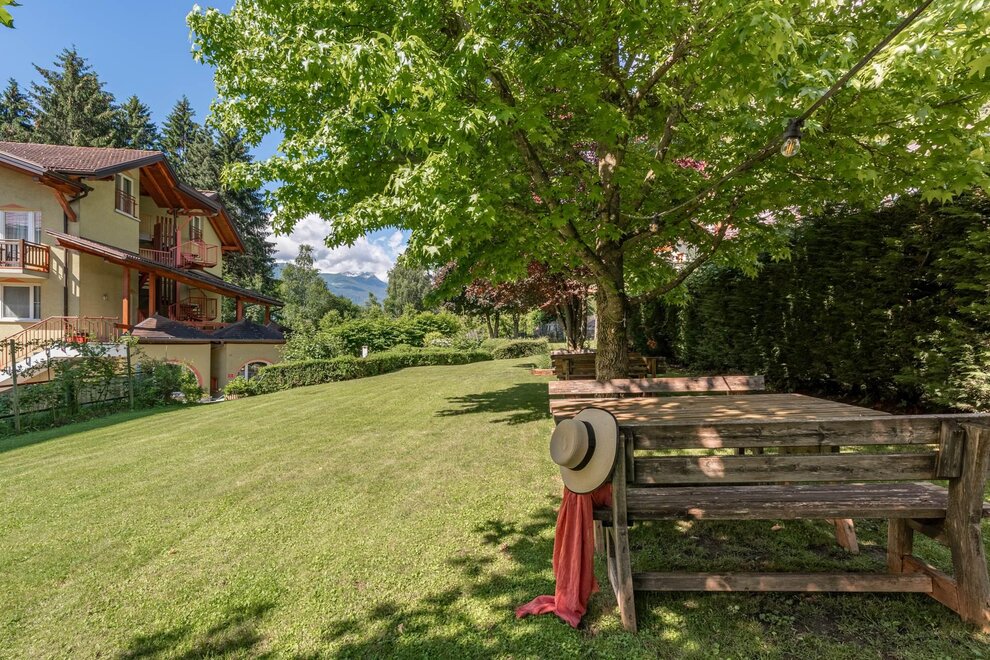 Ein großer Garten steht dir zur Verfügung, wo du im Schatten der Pflanzen ein gutes Buch lesen, die frische und reine Bergluft atmen und die absolute Ruhe genießen kannst.