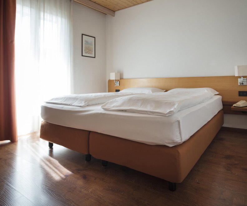 Unsere Zimmer sind zweckmäßig und behaglich mit bequemen Doppel- bzw. Ehebetten ausgestattet. Sie verfügen über: Schreibtisch, Lcd- Fernseher, einen kleinen Tresor, Telefon mit Direktwahl, Nasszelle mit Dusche, Haartrockner, Spiegel und einer Auswahl an Hygieneartikeln der Linie Eco Label. Unseren Gästen mit einer evtl. Allergie stellen wir eines unserer Zimmer mit Parkettboden zur Verfügung. Die Zimmer mit Teppich werden sorgfältig und pflichtbewusst gereinigt. Internet WIFI ist kostenlos. Fast alle Zimmer verfügen über einen Balkon. Ein drittes und viertes Bett kann bei Bedarf dazugestellt werden.