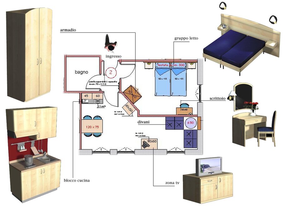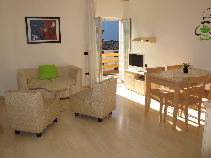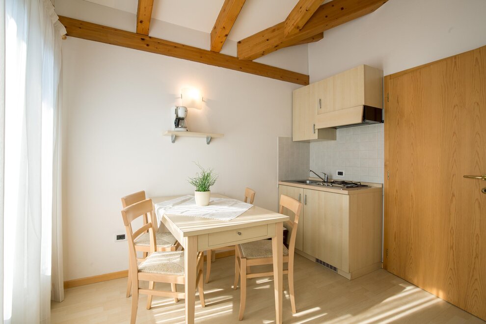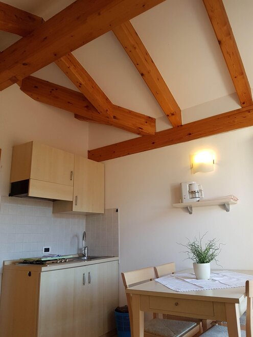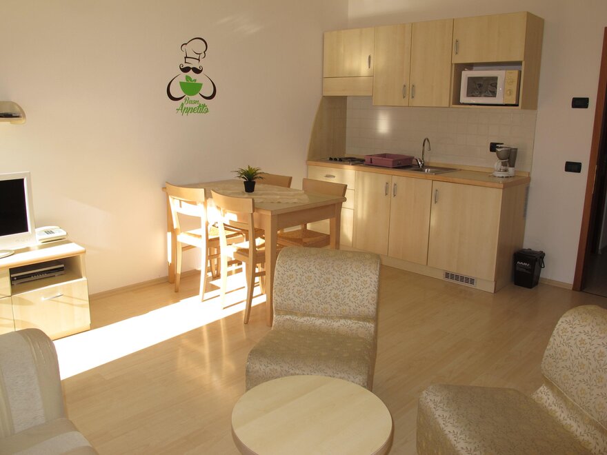 Die komfortable 3-Zimmer-Wohnungen haben eine Gesamtfläche von 41 bis 44 m ². und eignen sich für 4 Personen. Sie haben einen geräumigen Balkon mit schöner Aussicht auf den Caldonazzo See oder die Berge. Sie verfügen über ein Badezimmer mit Dusche, WC und Bidet in den meisten Fällen. Es gibt zwei Schlafzimmer, jeweils für 2 Personen. Teil-Wohnzimmer mit Sofa und/oder Sesseln und Teil-Küche mit Tisch und 4 Stühle . Die Küche ist ausgestattet mit einem 4-Platten-Herd , Kühlschrank und Spüle, Mikrowelle mit Grillfunktion. Geschirr, Besteck, Kaffeemaschine usw. Möblierten Balkon mit Tisch und Stühlen und kleinen Wäscheständer. Andere Dienste in der Wohnung: WIFI, Tv sat, Safe, Haartrockner und Telefon. Möbel, Böden und Bettwaren sind nicht-allergenen. Möglichkeit für ein Zustellbett.