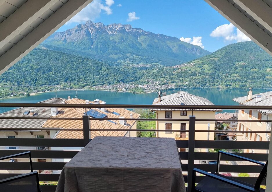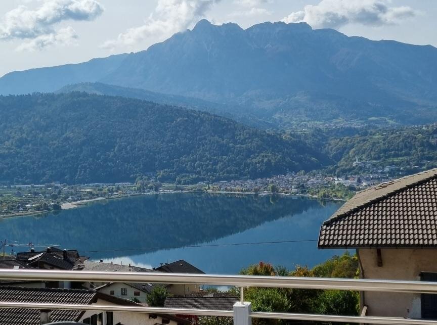 Unsere Schöne 4-Zimmer-Wohnung hat eine Fläche von ca. 65 qm, befindet sich auf der obersten Etage an der Vorderseite und hat einen spektakulären Blick auf den Caldonazzo See und die Bergketten rund um. Es ist ideal für große Familien oder eine Gruppe von Freunden. (max. 6 Pers.) Es verfügt über 3 Schlafzimmer: 1 Doppelzimmer, 1 Doppelzimmer mit Balkon und 1 Doppelzimmer mit eigenem Badezimmer. Der Wohnbereich befindet sich auf der Vorderseite und hat auch einen Balkon. Ein zweites Badezimmer mit Dusche, WC und Bidet. Teil-Wohnzimmer mit Sofa und Sesseln und Teil-Küche mit Tisch und 6 Stühle . Die Küche ist ausgestattet mit einem 4-Platten-Herd , Kühlschrank und Spüle, Mikrowelle mit Grillfunktion. Geschirr, Besteck, Kaffeemaschine usw. Möblierten Balkon mit Tisch und Stühlen und kleinen Wäscheständer. Andere Dienste in der Wohnung: WIFI, Tv sat, Safe, Haartrockner und Telefon. Möbel, Böden und Bettwaren sind nicht-allergenen. Möglichkeit für ein Zustellbett.