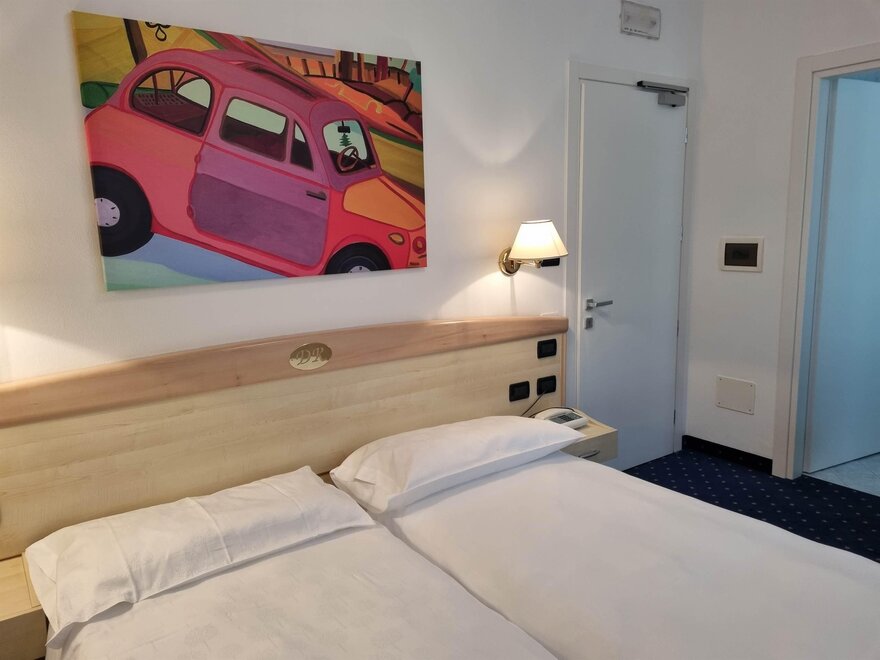 Die ART ROOM Zimmer sind unsere farbenfrohe Zimmer, inspiriert von Kunst. Die Artisieke-Eingabe gibt eine angenehme Kreativität in den Raum. Jedes ART ROOM Zimmer enthält Reproduktionen von Werken von verschiedenen lokalen und niederländischen Malern. Die Zimmer ART ROOM haben Flächen zwischen 16 und 18 qm. Allen verfügen über einen Balkon mit Sitzgelegenheiten und einen tollen Panoramablick über den See von Caldonazzo und das Valsugana Tal rund um. Das Badezimmer hat eine Dusche, WC und Bidet in den meisten Fällen. Kostenlose WiFi, LCD-TV, sat, Telefon, Safe und Haartrockner.
