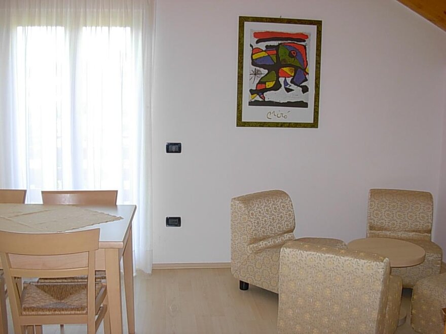 Dieses gemütliche 3-Zimmer-Wohnung hat eine Fläche von 39 m ². und bietet Platz für max. 3 Erwachsene oder 2 Erwachsene + 2 Kinder. Es verfügt über einen Balkon mit einem schönen Blick auf den Caldonazzo-See und die Berge. Ein Badezimmer mit Dusche, WC und Bidet. Zwei Schlafzimmer: ein Doppelzimmer und ein Einzelzimmer mit der Möglichkeit für ein viertes Bett. Teil-Wohnzimmer mit Sofa und/oder Sesseln und Teil-Küche mit Tisch und 4 Stühle . Die Küche ist ausgestattet mit einem 3-Platten-Herd , Kühlschrank und Spüle, Mikrowelle , Geschirr, Besteck, Kaffeemaschine usw. Möblierten Balkon mit Tisch und Stühlen und kleinen Wäscheständer. Andere Dienste in der Wohnung: WIFI, Tv sat und Telefon. Möbel, Böden und Bettwaren sind nicht-allergenen.