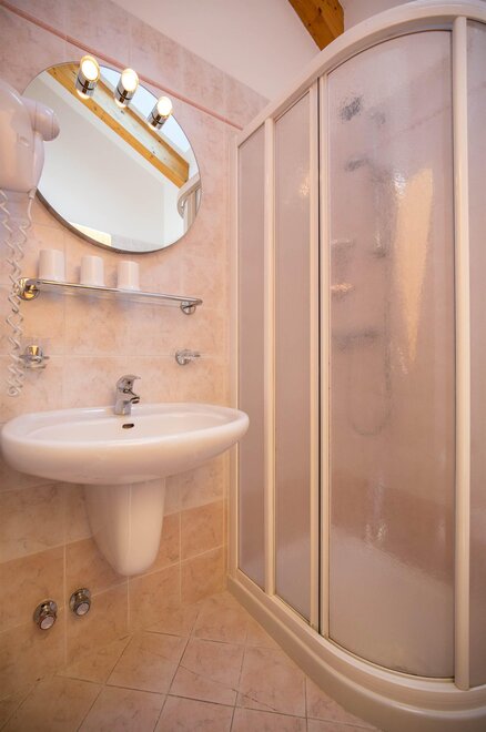 Dusch mit Duschkabine , Fön und Schließfächer.