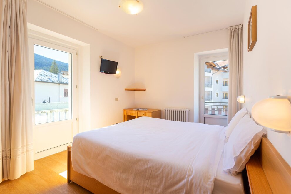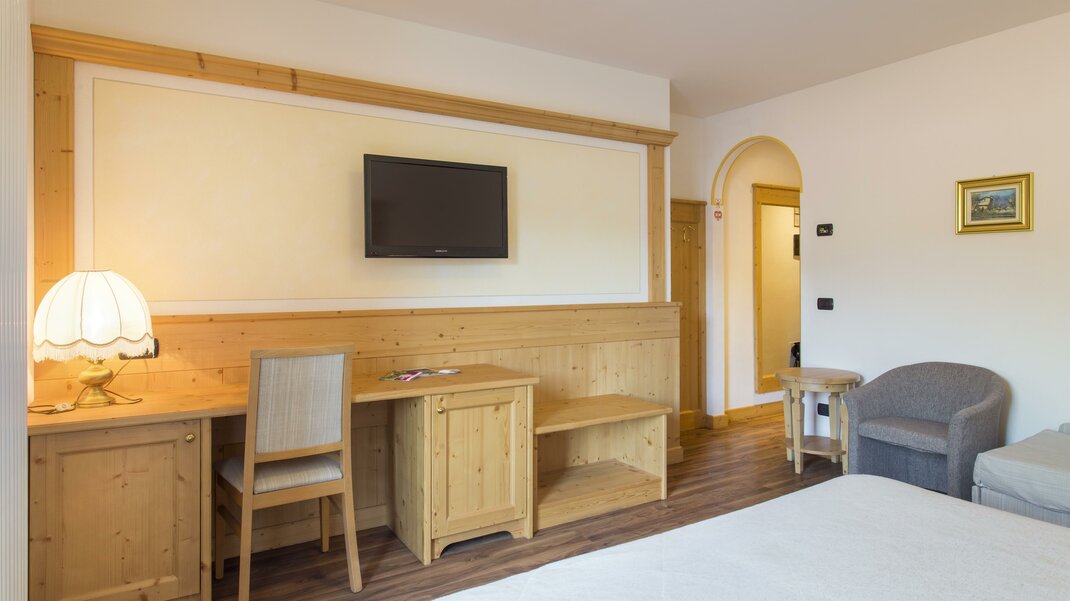 Darüber haben wir die Standardzimmer des Hotel Stella Alpina gestaltet. Einfache Zimmer, in denen es jedoch an nichts fehlt: Bequemlichkeit, Praktikabilität und die warmherzige Atmosphäre, die durch die alpine Einrichtung entsteht.