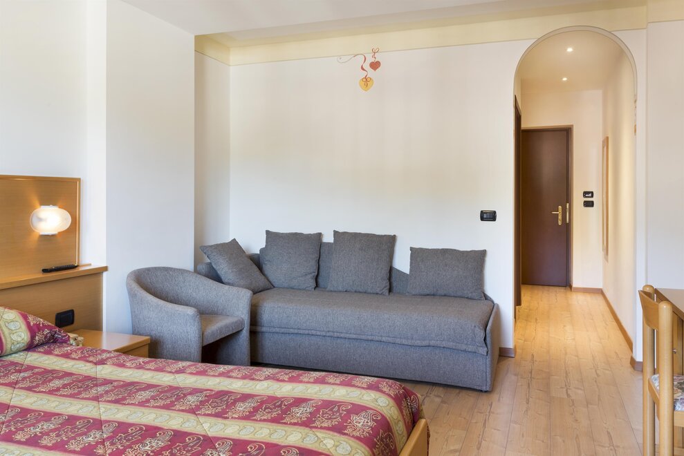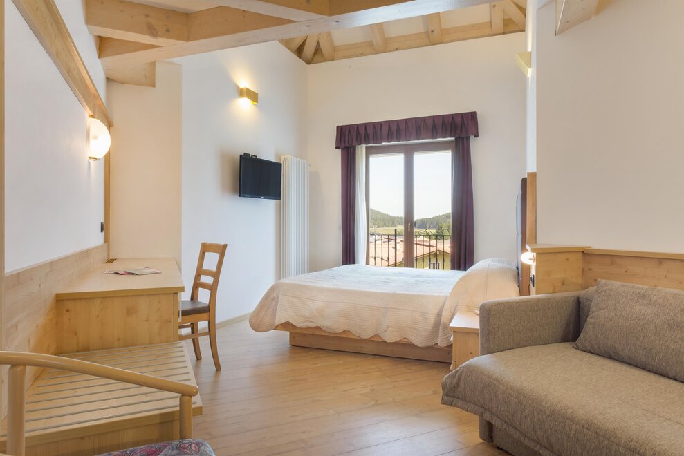 Eine große Familie verdient auch im Urlaub den richtigen Raum. Das Familienkomfortzimmer vereint die Familie und bietet den Eltern den richtigen Raum zum Entspannen und den Kindern zum Spielen. Ausgestattet mit allen Annehmlichkeiten haben alle Familienkomfortzimmer einen Blick auf die Brenta-Dolomiten und die Cima Paganella!