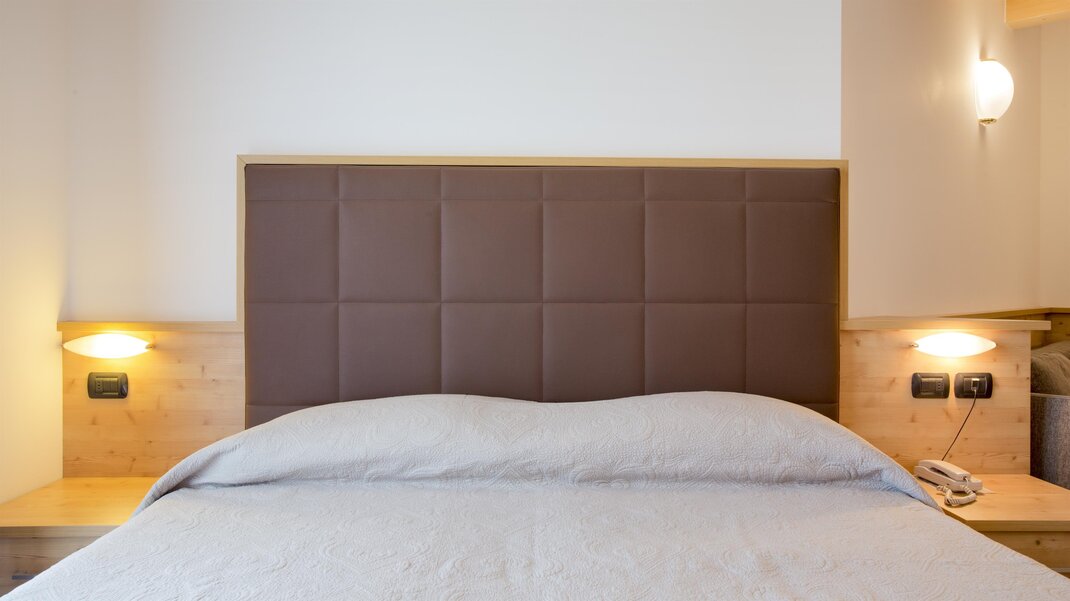 Ein französisches Bett, bequem, weich und... groß wartet bereits auf dich! Für deinen Urlaub am Fuße der Paganella solltest du auf Komfort nicht verzichten, wir möchten dich verwöhnen und unser Einzelzimmer mit großem Bett wird dir süße Nächte bescheren.