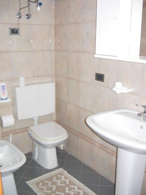 Bad, WC, WC, Bidet, Waschtisch, Dusche oder Badewanne