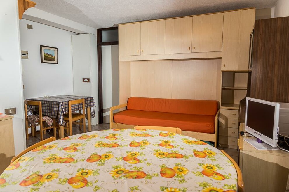 Apartments served by lift, living room with double sofa bed, kitchenette and balcony. Double bedroom with bunk bed, sunny balcony with view, bathroom. On the other side, there is a second double bedroom and bathroom. Energy class G CIPAT: 022233-AT-918461022233-AT-918448022233-AT-918451022233-AT-918458022233-AT-918464