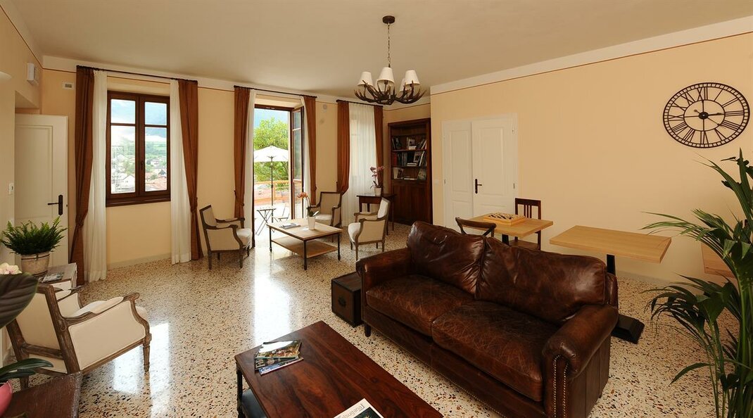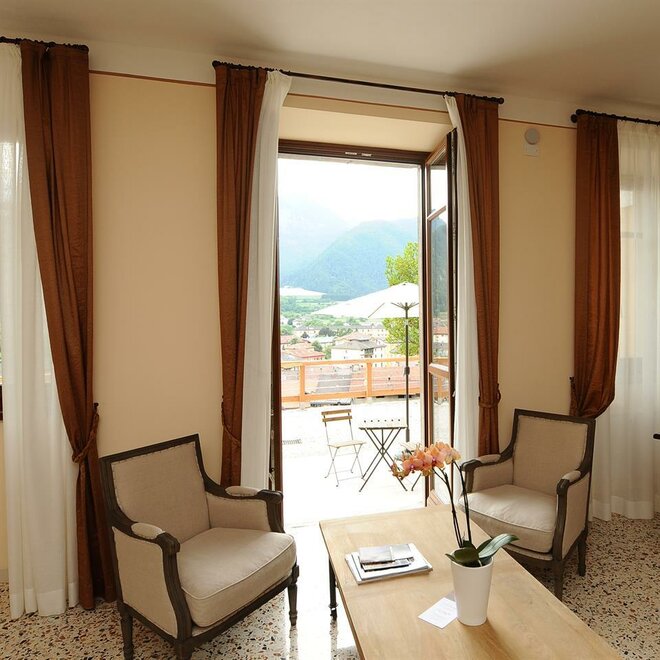 Die großzügigen Zimmer befinden sich auf der ersten Etage, sind 20m² groß, mit einem 180cm langen Bett. Das Bad verfügt über Duschkabine mit Whirlpool/Dampfbad/Farbtherapie für wirklich erholsame Momente. Darüber hinaus gibt es ein Körperpflegeset, Föhn, TV, W-LAN. Eines der Superior-Zimmer verfügt über einen exklusiven Balkon mit Blick auf den Ort.