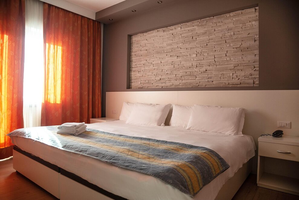 Junior Suite Fata TurchinaDie Suite hat eine Fläche von etwa 20 Quadratmetern, der Blick auf den geräumigen Balkon macht sie hell und komfortabel. Das Zimmer ist mit einem Doppelbett und einem zusätzlichen Bett, einer Doppeldusche ausgestattet, um den Raum gleichzeitig zu nutzen, ohne draußen warten zu müssen.