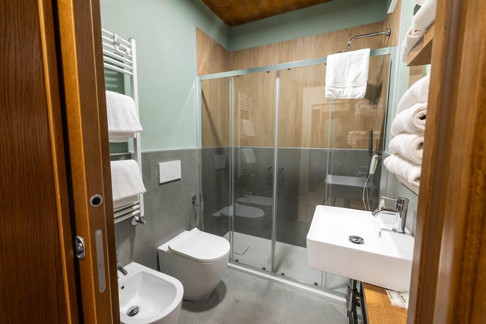 Die Zimmer sind mit allen Annehmlichkeiten ausgestattet, darunter einem Set aus Bademänteln für Erwachsene.Diese Zimmer sind nicht mit einem Aufzug erreichbar.