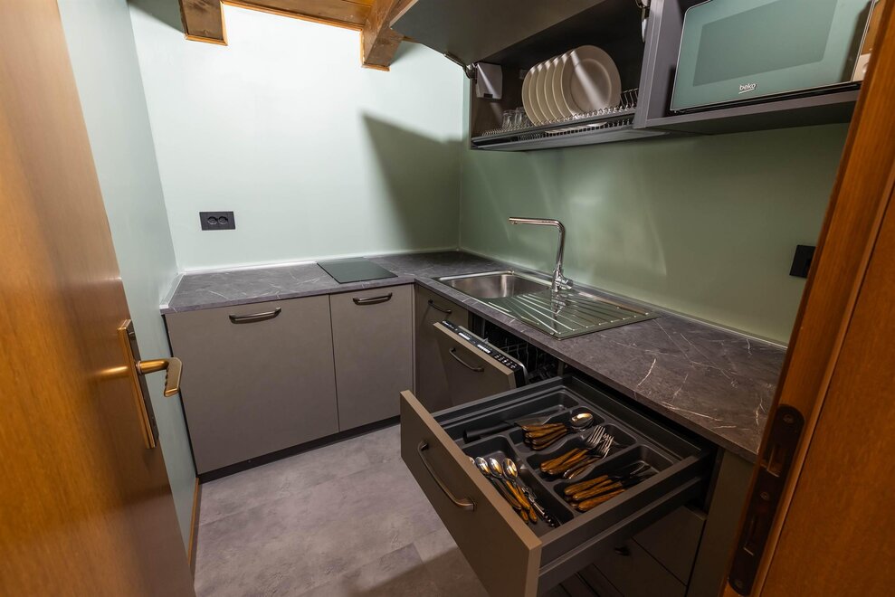 Balkon, Separate Küche, Haarföhn, Kabelfernsehen, Nichtraucher Zimmer/App./Whg., Küchengeräte, Wohn-/Schlafräume kombiniert, Mikrowelle, Heizung, Geschirrspülmaschine, Elektroherd, Moderne Möblierung, Toilettenwäsche, Esszimmer, Terrasse (teilweise), WiFi, Schrank, Safe, Kühlschrank, Holz- oder Parkettboden, Rauchmelder