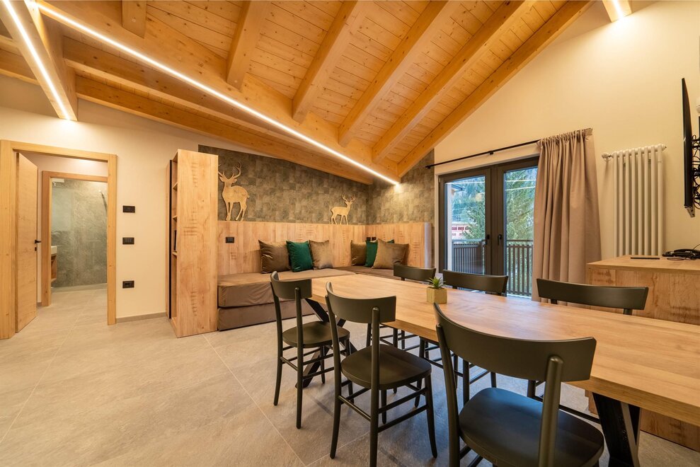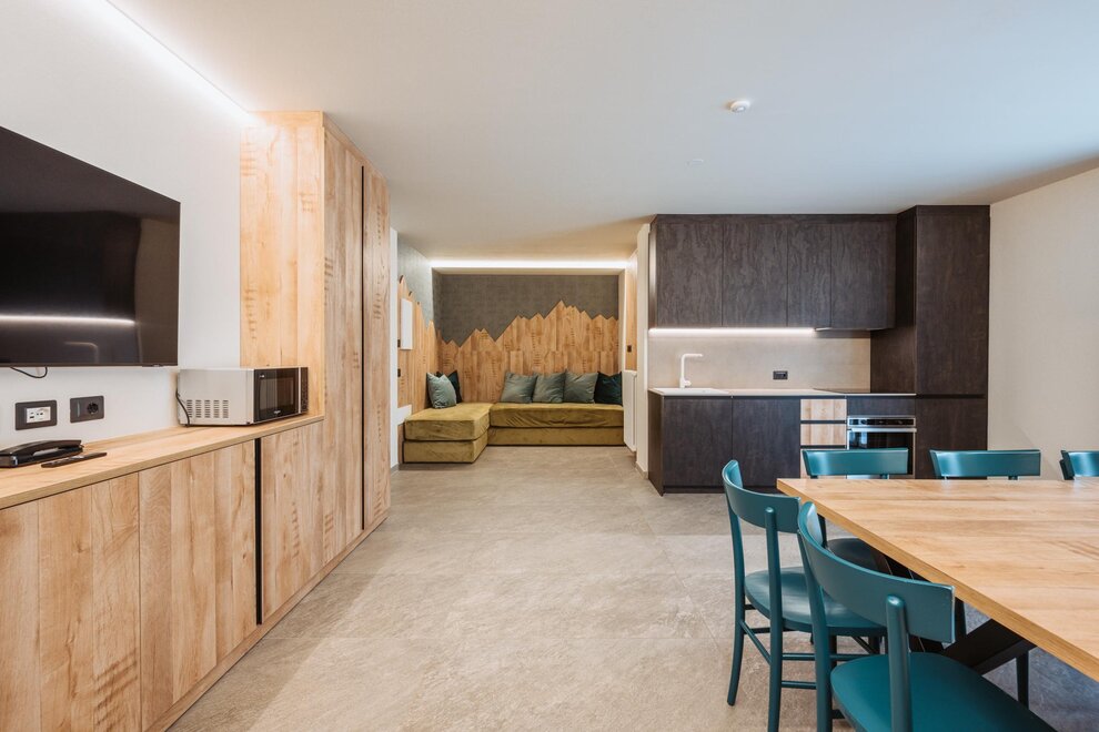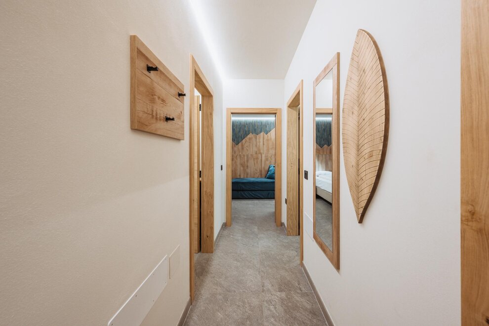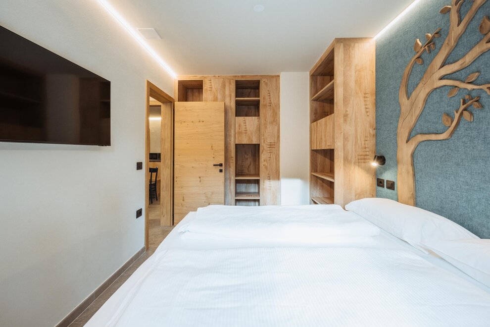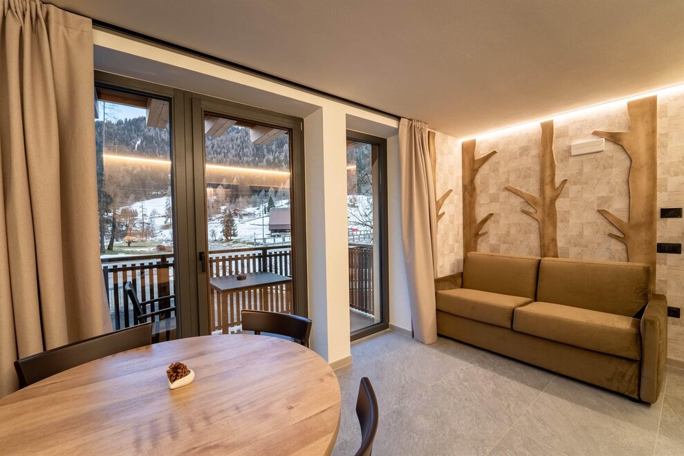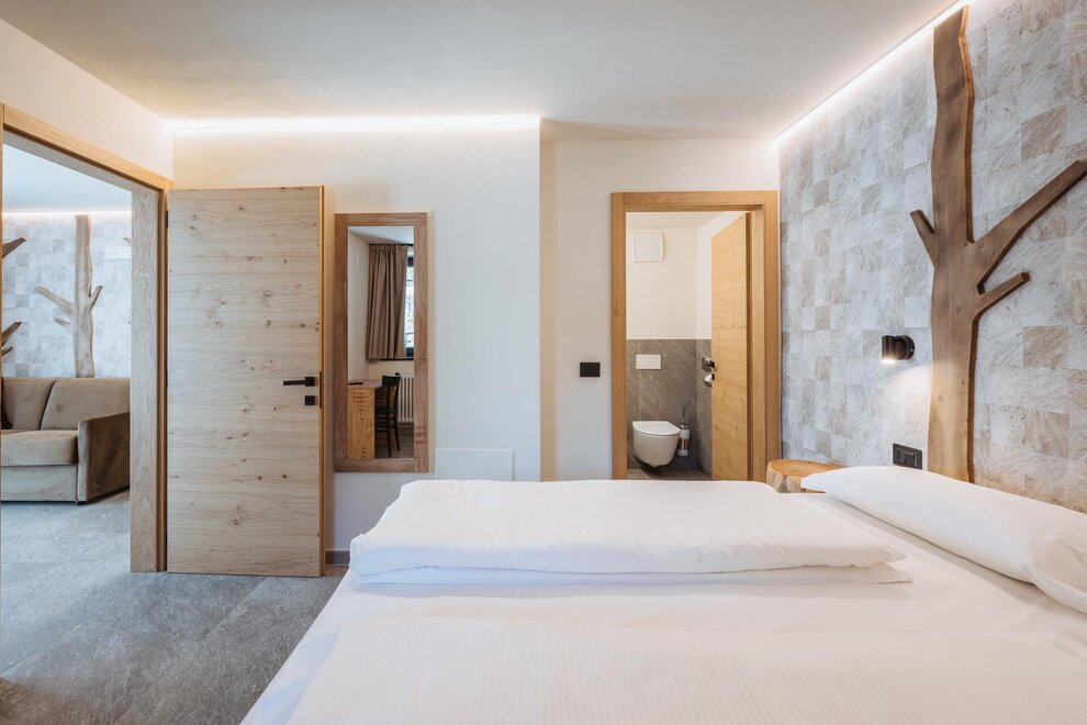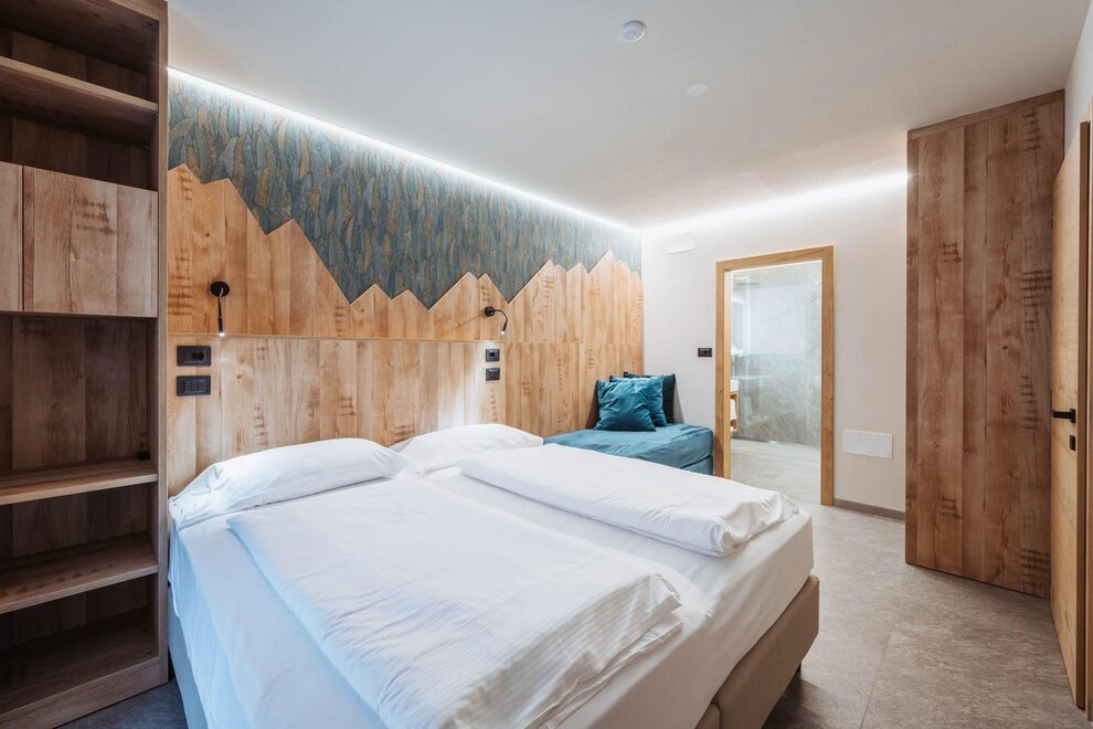 Die großen Räume sind von Farben geprägt, die von der unberührten Natur des Val di Sole inspiriert sind, und vermitteln das Gefühl, mit der Umgebung eins zu sein.