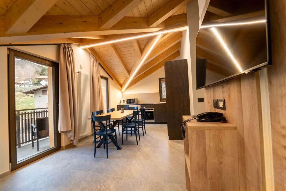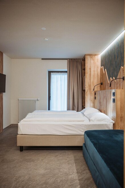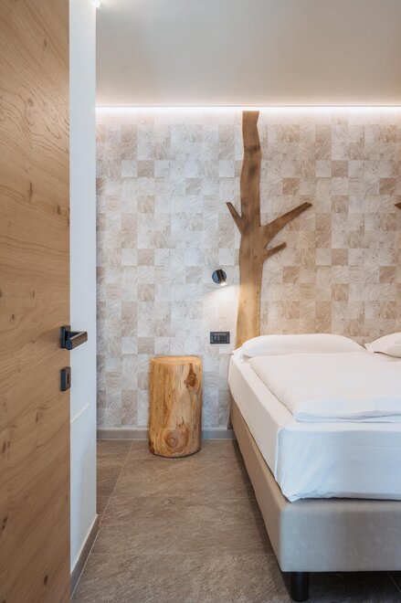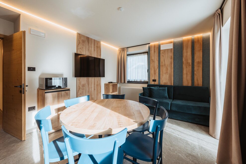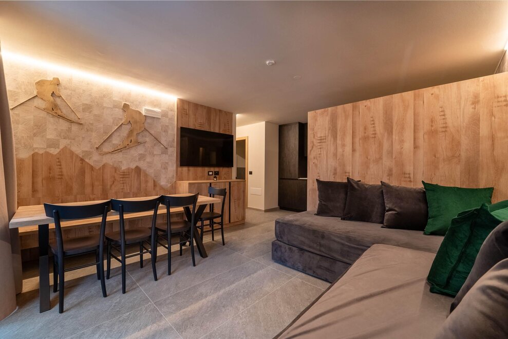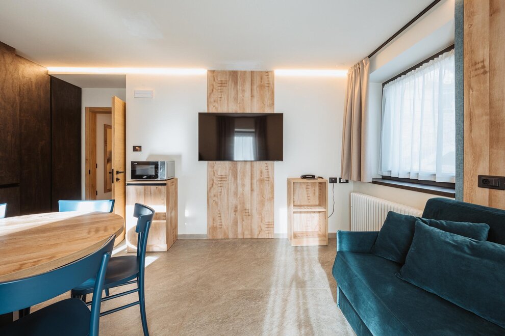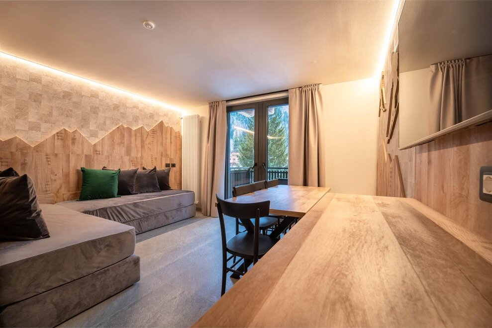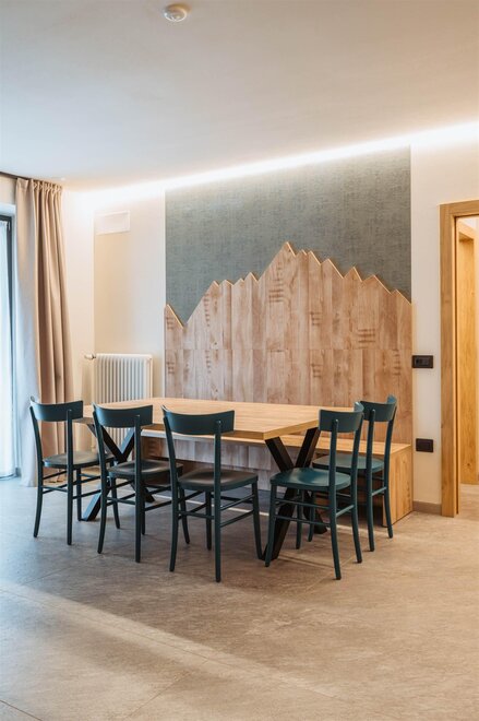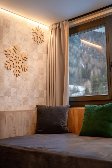 Die großen Räume sind von Farben geprägt, die von der unberührten Natur des Val di Sole inspiriert sind, und vermitteln das Gefühl, mit der Umgebung eins zu sein.