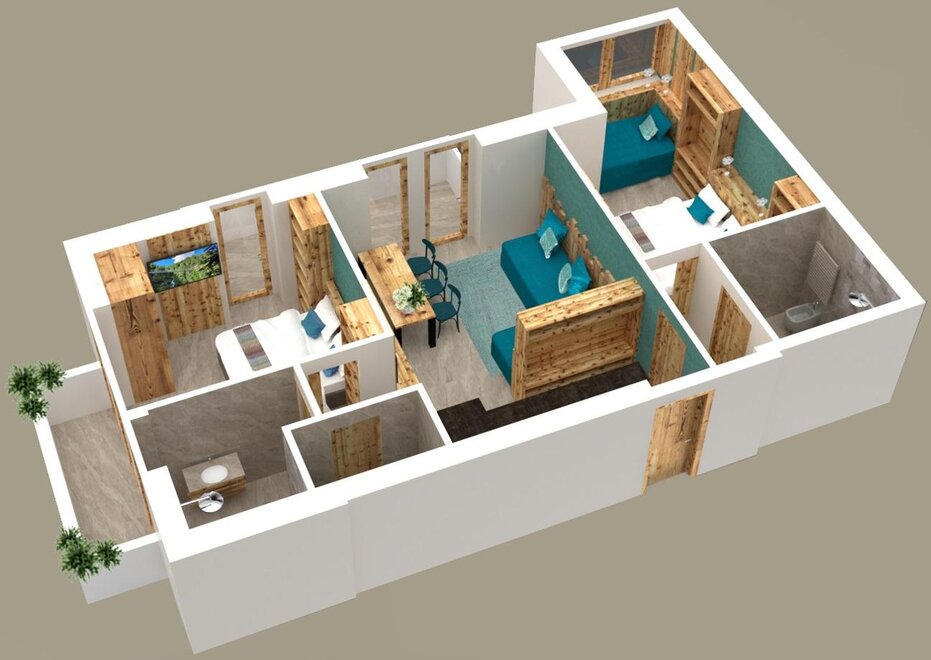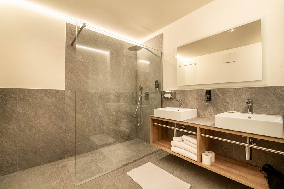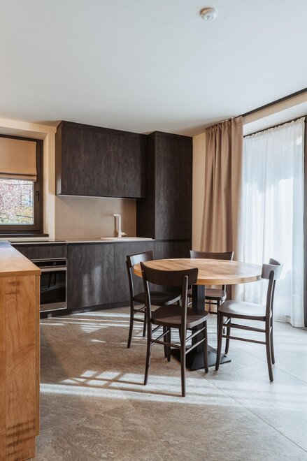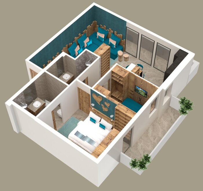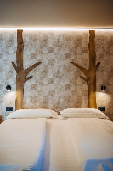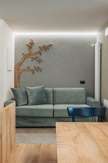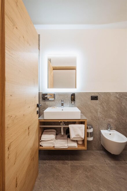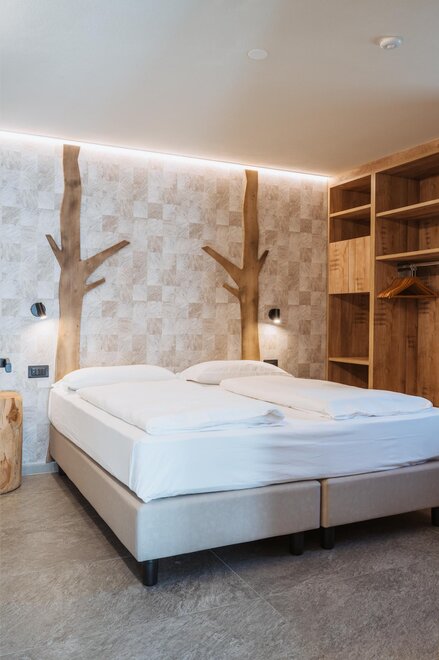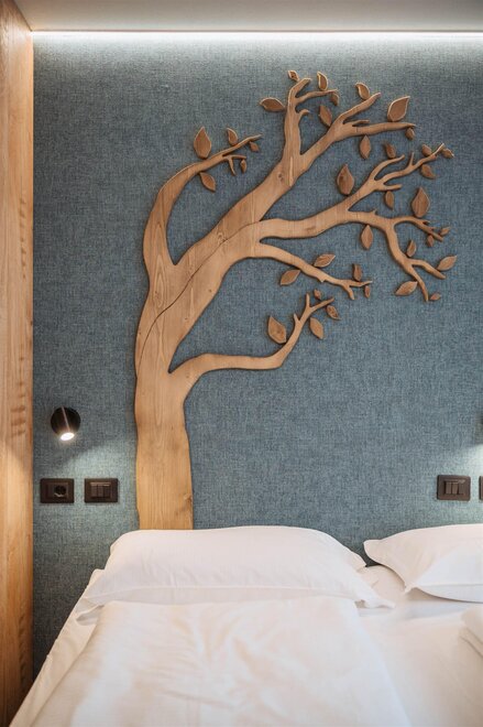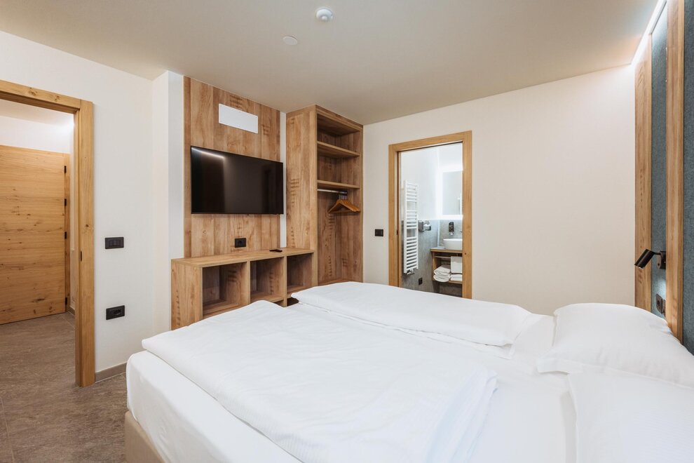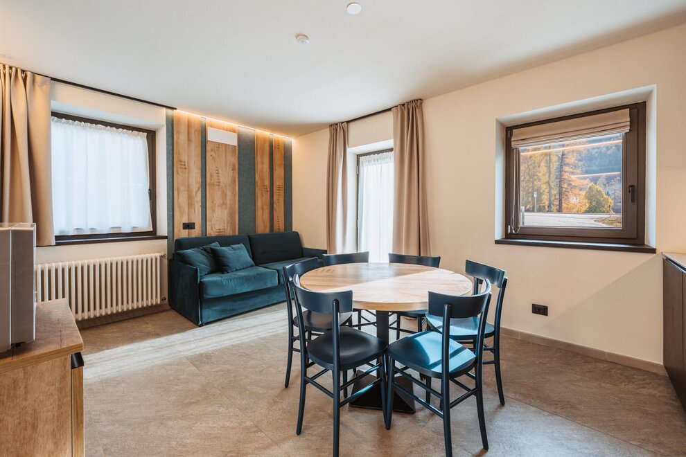 Die großen Räume sind von Farben geprägt, die von der unberührten Natur des Val di Sole inspiriert sind, und vermitteln das Gefühl, mit der Umgebung eins zu sein.
