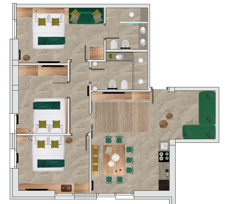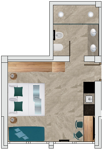 Die Bilder dienen als Beispiel für die angegebene Kategorie; einzelne Zimmer können jedoch in Raumaufteilung und Möbelanordnung variieren.