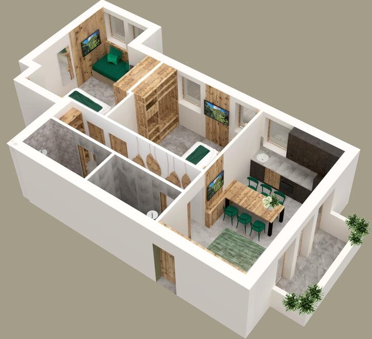 Größe 56 m² Belegung 1 - 6 Erwachsene , 0 - 5 Kinder Räume 3 Schlafzimmer 2 Mehr Details