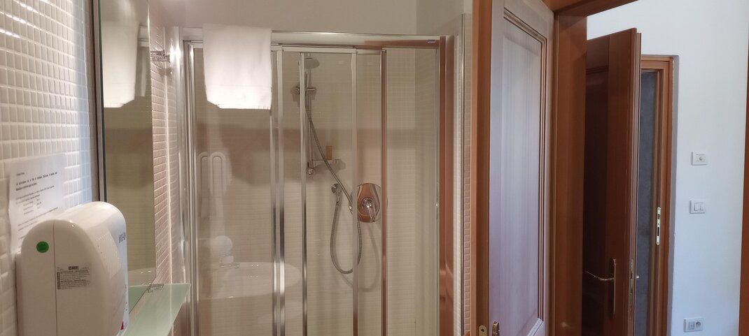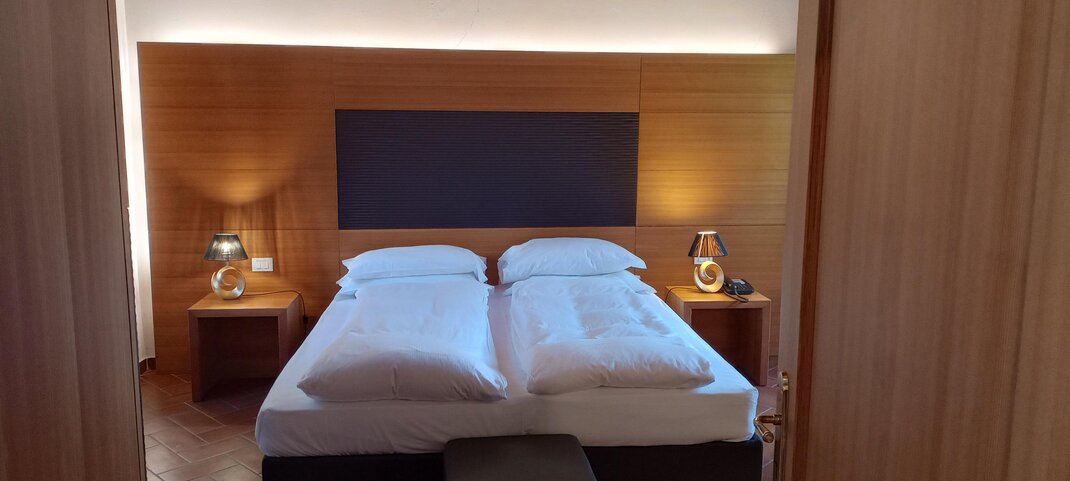 Geräumiges Zimmer bestehend aus Wohnbereich mit Schlafcouch und Schlafzimmer mit Doppelbett. Bei Vorzug von drei Einzelbetten bitten wir um eine spezielle Anfrage und um Geduld auf die Rückmeldung des Personals. Das private Bad verfügt über eine Badewanne und eine Duscharmatur.