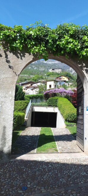 Von der A22 nehmen Sie die Ausfahrt Rovereto Nord, an der ersten Kreisverkehr biegen Sie nach Nogaredo ab und gelangen auf die zentrale Piazza von Nogaredo (Sitz der Gemeinde), biegen Sie rechts ab und fahren die kurze Steigung, die Via Conti Lodron, hinauf. Links, vor dem Bogen mit dem Wappen der Grafen Lodron, gibt es das Holztor, um in die Garage zu gelangen.