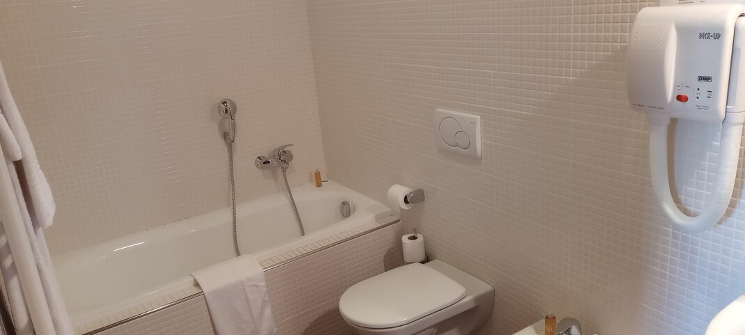 WC, Badewanne mit integrierter Dusche, Bidet, Toiletten Anzahl: 1, Dusche oder Badewanne, Badewanne, Bad, WC, Fließendes Kalt- und Warmwasser