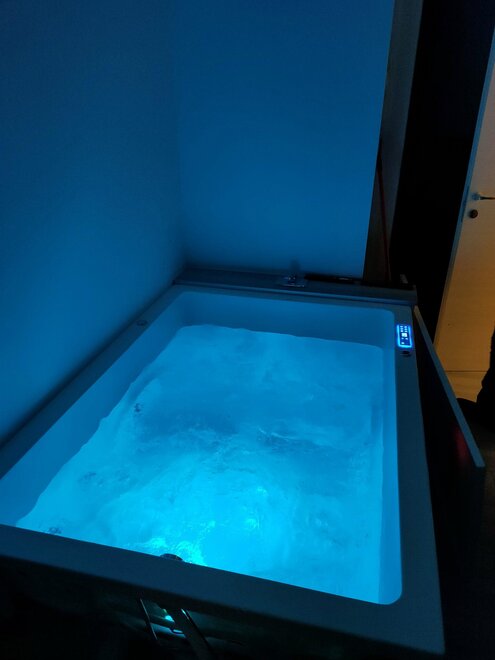 Zweizimmerwohnungen im Erdgeschoss mit Sauna und privatem Whirlpool. Sehr großer möblierter Außenbereich zum Essen oder Entspannen.